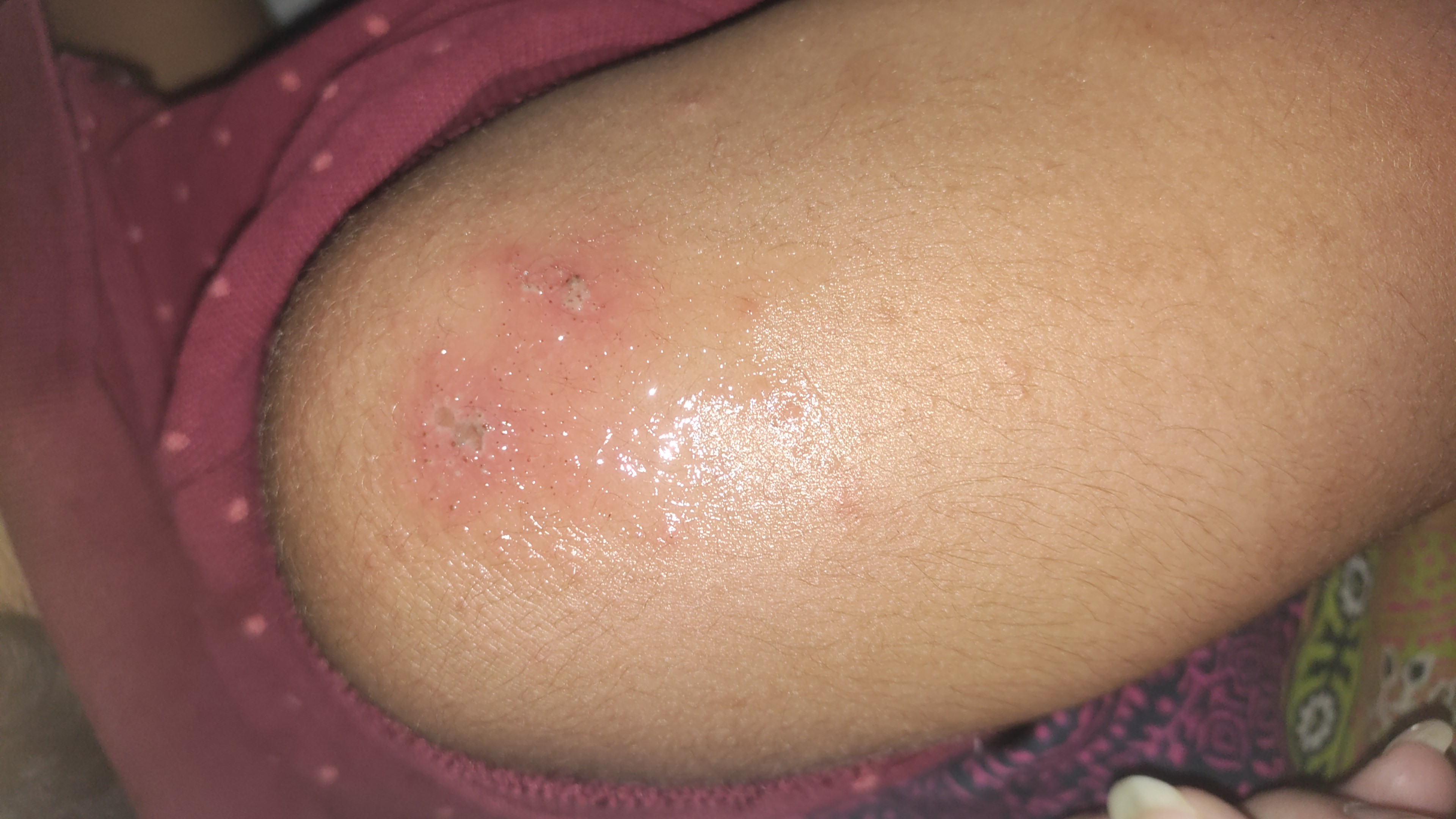 My son got this allergy just below his shoulder today.. I applied mycitracin and gave him anti allergic syrup .. I need your advice about it.. What kind of allergy is it? Should I consult a doctor? Is there anything serious about it?