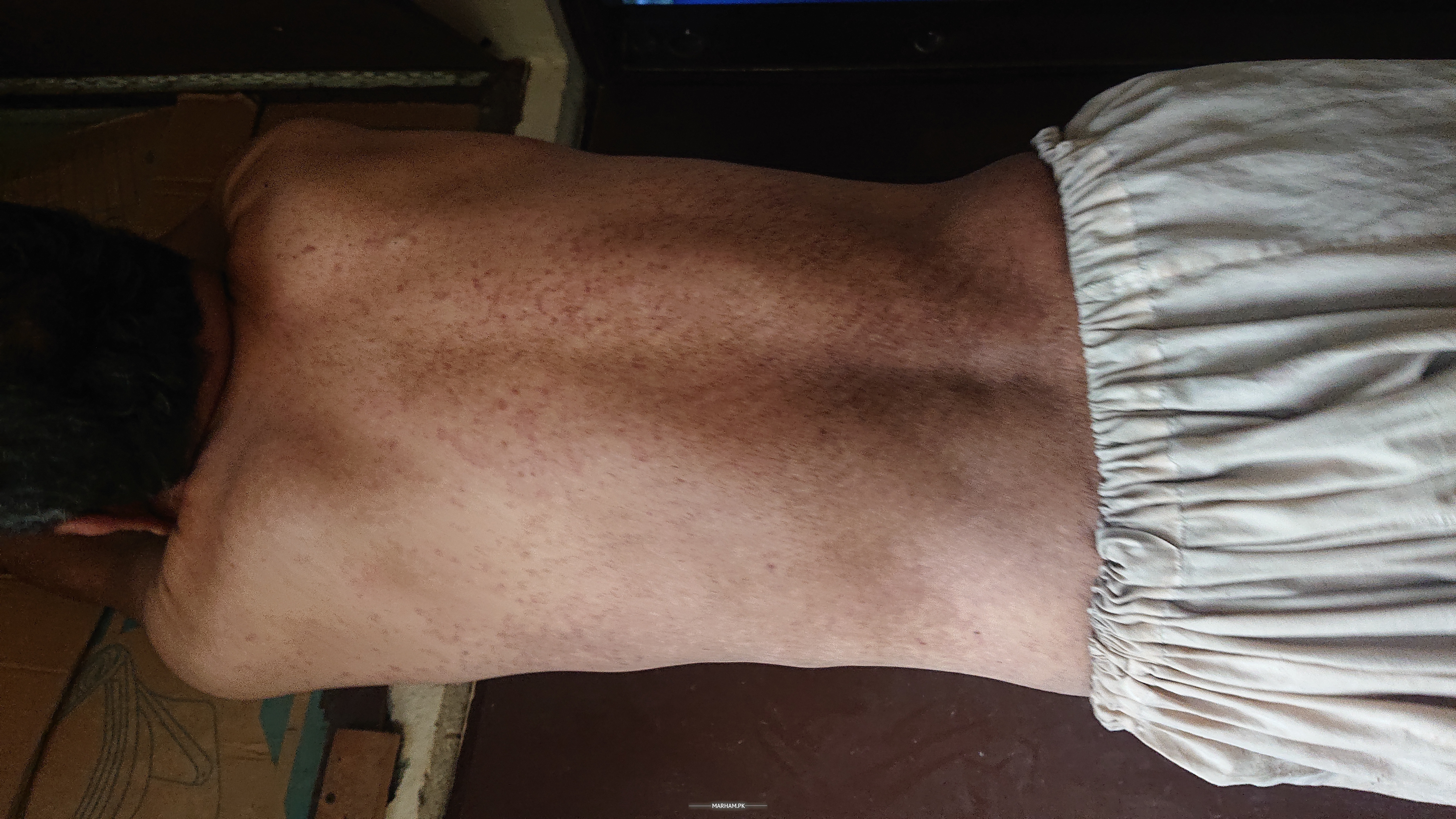 Mere husband ko 1 month pehele chickengunya hua, drips lagi every 4/5 days, ab unki back oer rash tha i thought garmi ka he lekin ab rash as such nahi he ajeeb spots hen hyperpigmentation jese... Pics post karti after post approval