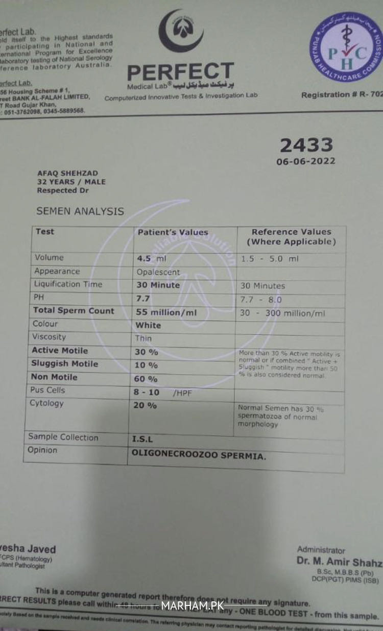 apna semen amalysis dobara krwayen chughtai lab sy...