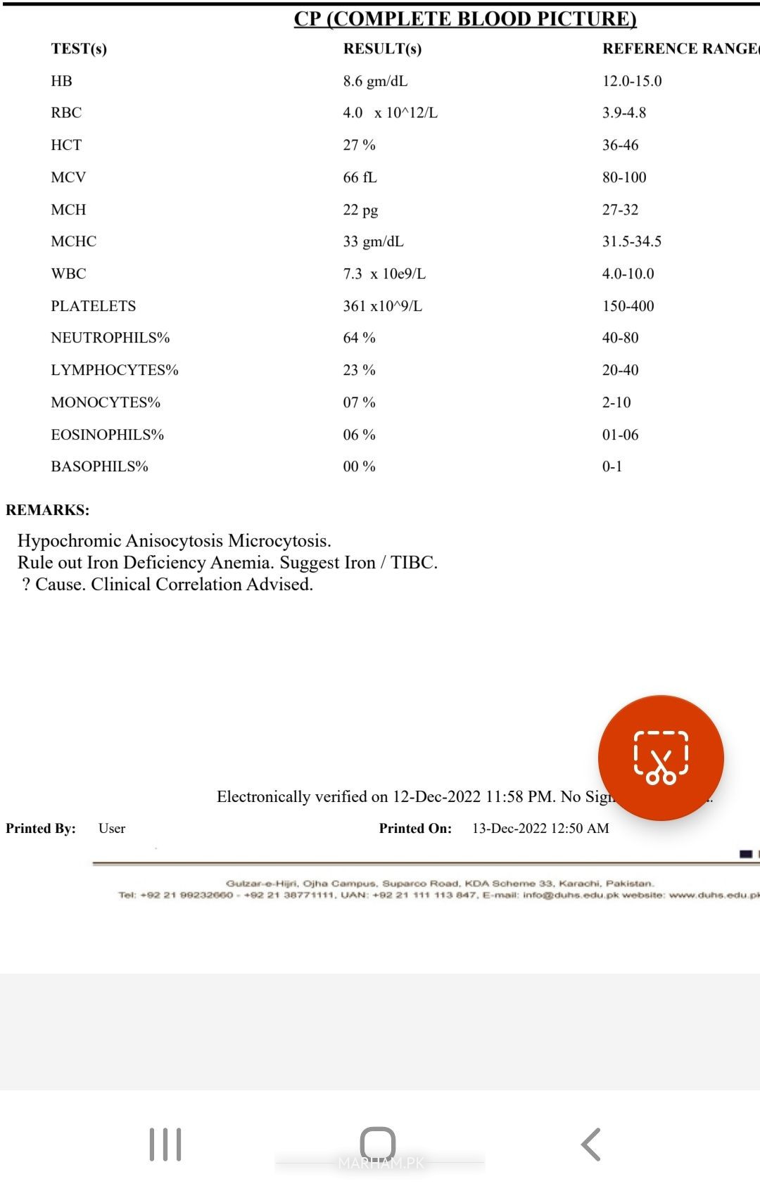picture of cbc shows iron deficiency anemia