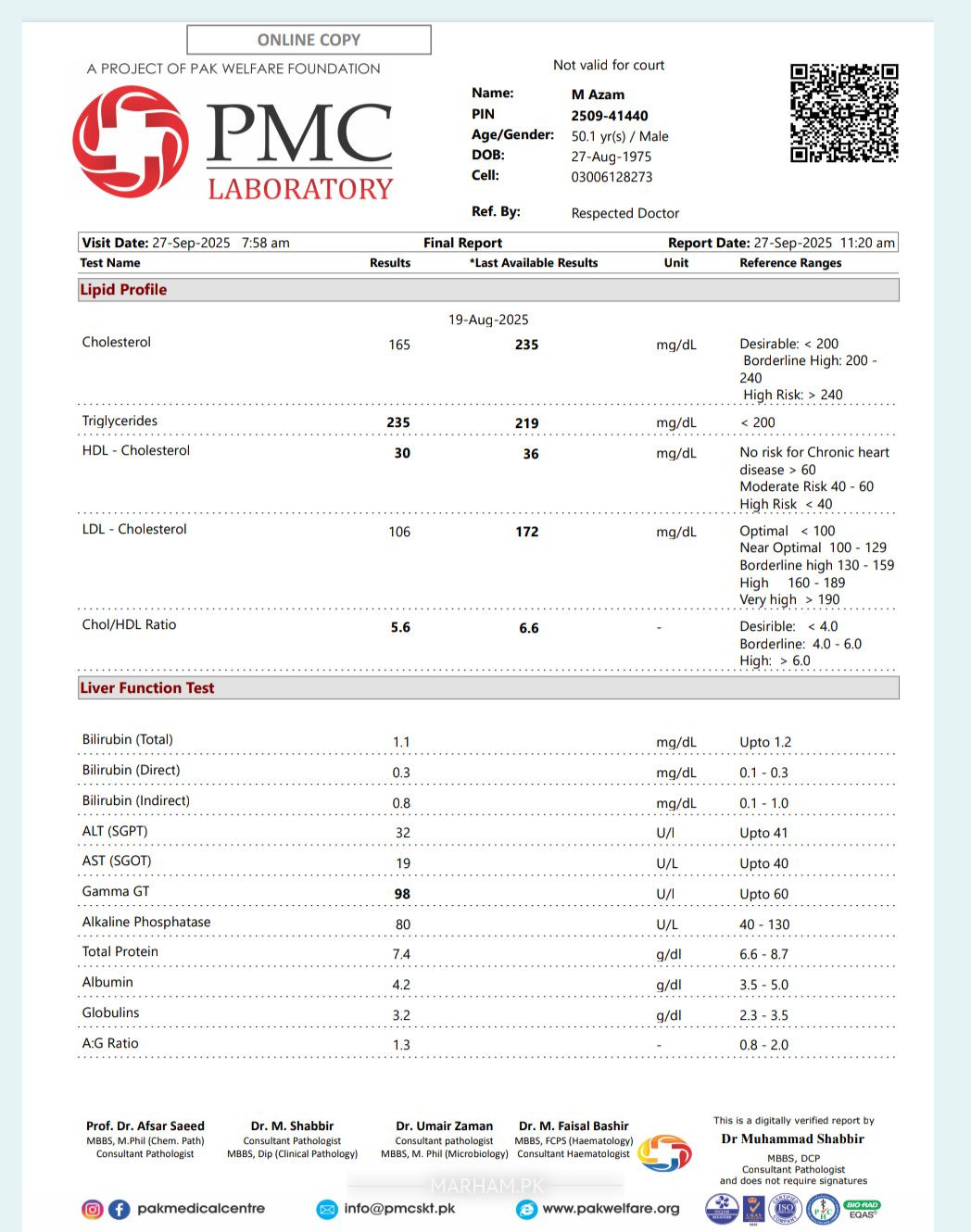 Patient Profile: Mr. M. Azam, 50 years old, with a history of type 2 diabetes and dyslipidemia.Medical History: Approximately two years ago, he experienced pain on the right side, which was initially thought to be muscular and treated accordingly, and the pain resolved. Three months ago, he presented with high blood sugar and developed severe left arm pain radiating to his hand and back. This was initially thought to be neuropathic pain, especially since his ETT negative, and he was treated with neuropathic medications, which alleviated the pain.Recently he started experiencing sleep disturbances and SOB, leading to an echocardiogram that revealed a reduced (EF)30%, indicating ischemic cardiomyopathy.consulted Dr. Asad Riaz, who diagnosed underlying heart disease and started him on a comprehensive medication regimen.Recently, he underwent coronary angiography, which revealed critical blockages in all three major coronary arteries. But pateint stable now, with no chest pain or shortness