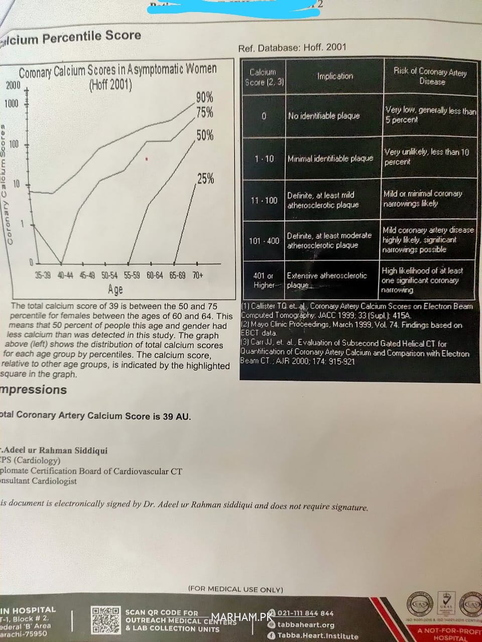 My mother has been undergoing cardiologist treatment for quite a while. She has undergone angiography (nothing conclusive), and numerous other scans with no definitive results that she has heart disease. Most recently she was asked to undergo Coronary artery calcium scan and results just arrived. While we wait for her appointment with the doctor, i needed to know if these results indicate anything. Thanks in advance.