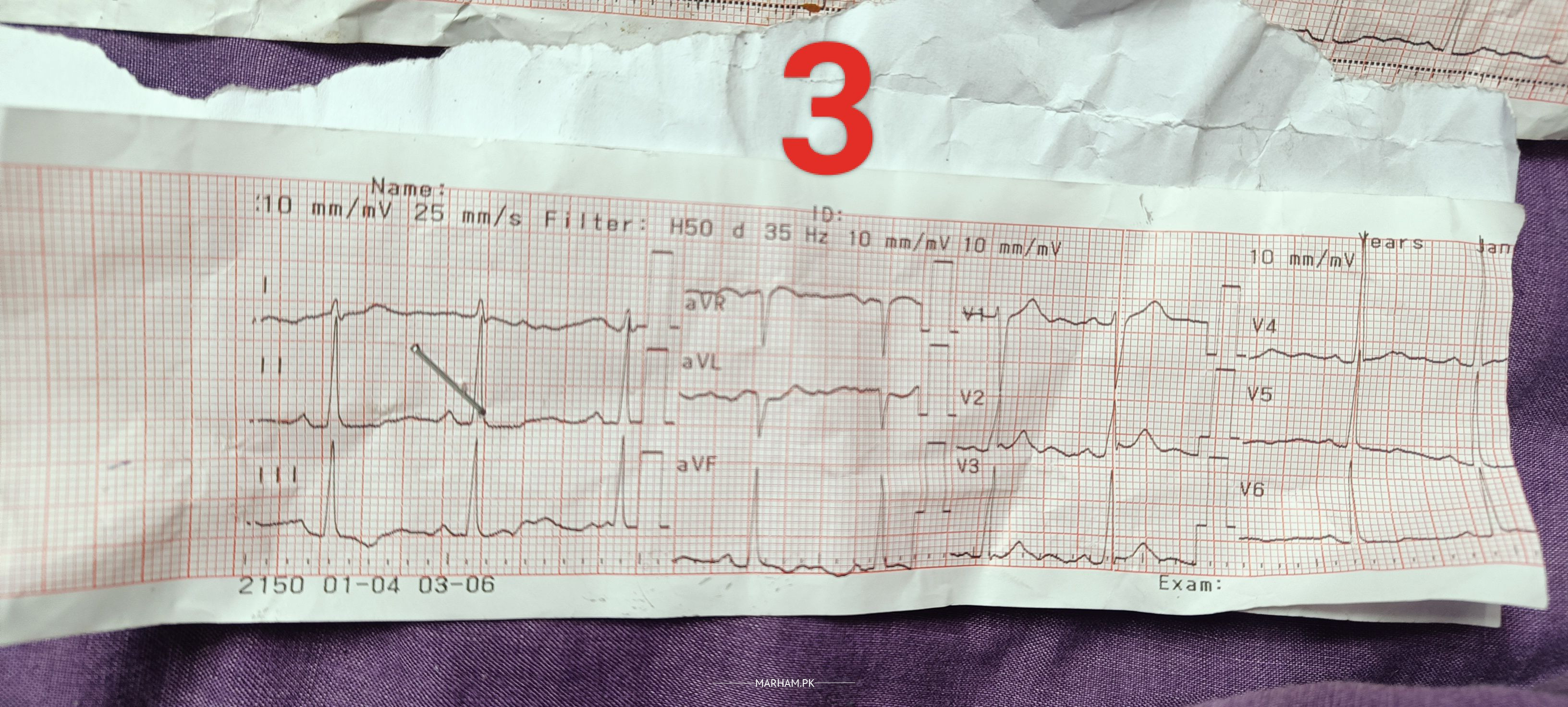 Can anybody explain if there is any difference between these 3 ECGs? My brother has had Anxiety and Cardiophobia for the last 3 years. Why is QRS in ECG 3 of V2 in the opposite direction? Can anybody tell, please?