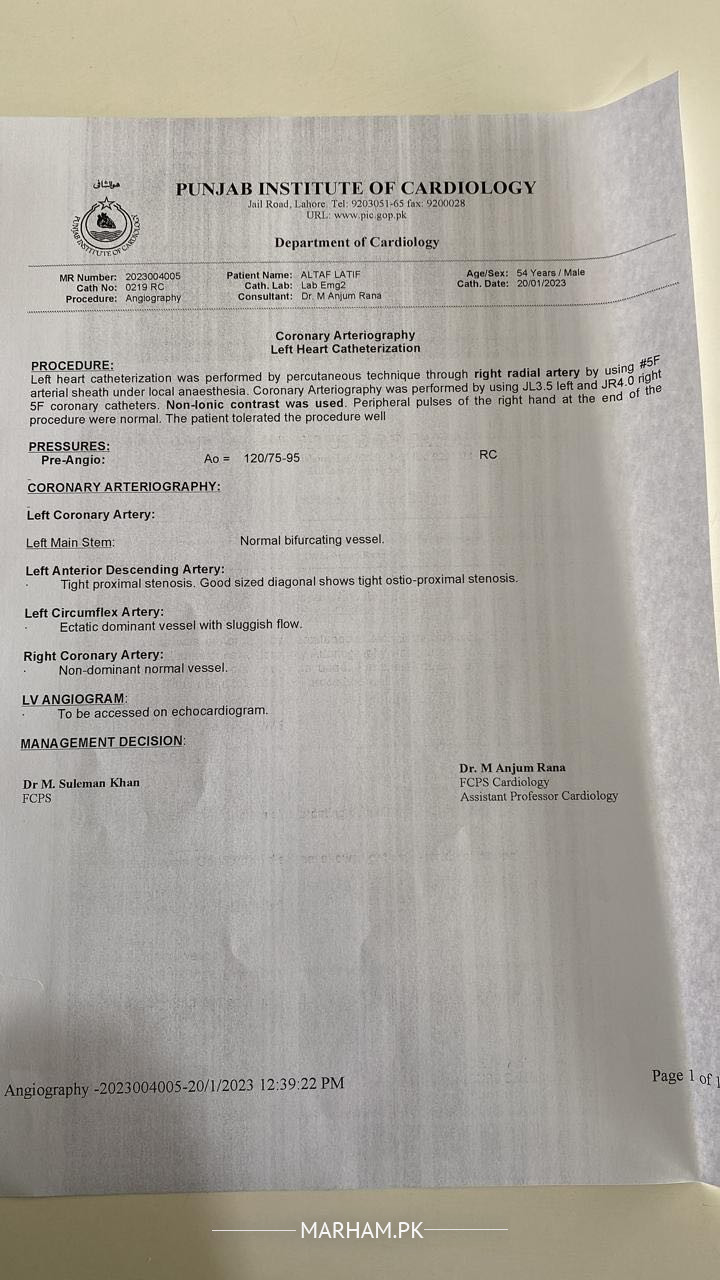 My father suffered from a chest pain and admiited to a hospital. Then angiography was being done and injection/medicine were recommended to make blood thin and then descion would be made. Now some says for a stunt and some do not and I am confused about it. Report is being attached. Kindly recommend some favourable opinion.