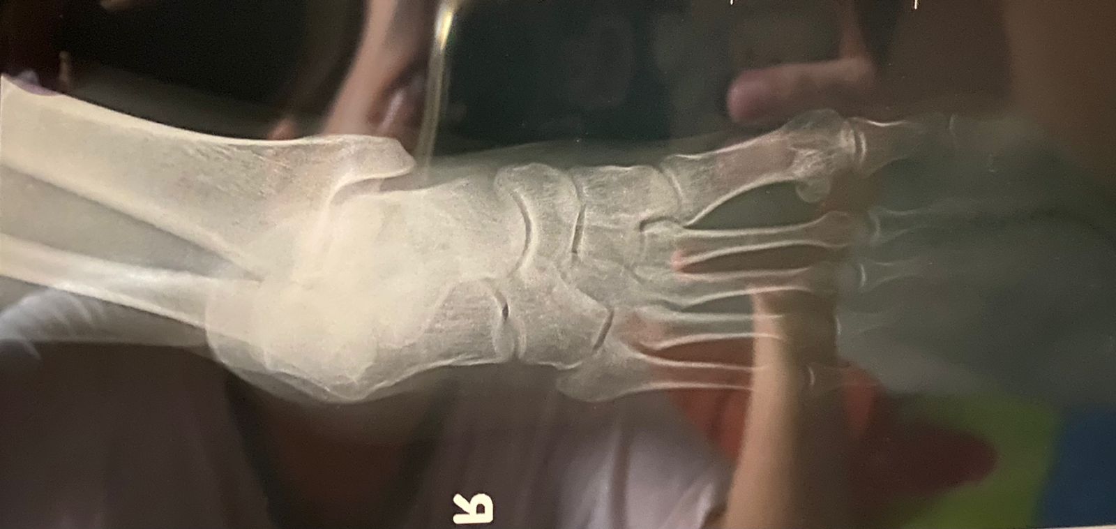 Swelling was on lateral side of foot between ankle and little finger n the area got bruised too after some time on the day of injury...pain spreaded from lateral to medial surface and it was so severe in tarsal area that i wasn't even able to put my foot on floor even without putting any pressure..its been 18 days ..im judt confused bcoz some are saying there's nothing & it might be a sprain n some saying hairline fracture h so keep it for 4 weeks..although im all ok now Alhamdulillah..no pain no symptoms since a week & im easily walking with support