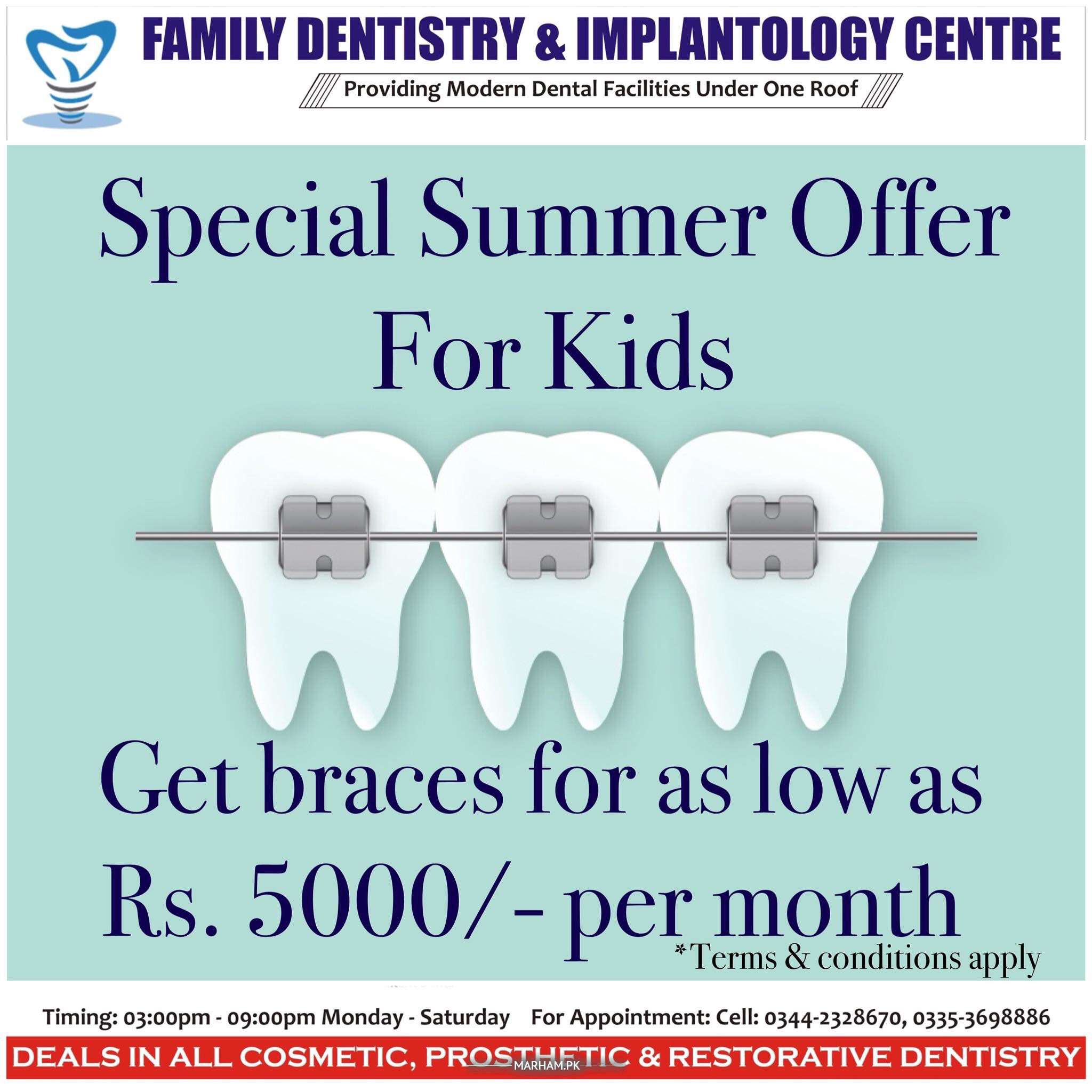 We have a pocket friendly package for braces at our clinic . You can have braces & pay on a monthly installments of Rs. 5000/- per month . Offer is for a limited time . Terms & conditions apply