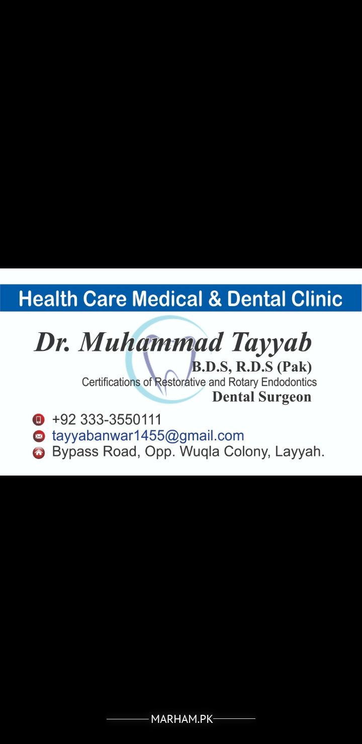 Healthcare medical and dental clinic bypass road layyah opposite wuqla Colony gate no. 1