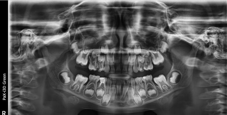 Her both upper D are definitely for extraction and for her E need to evaluate clinically as well there might get b some Endodontic treatment and space maintainers afterwards