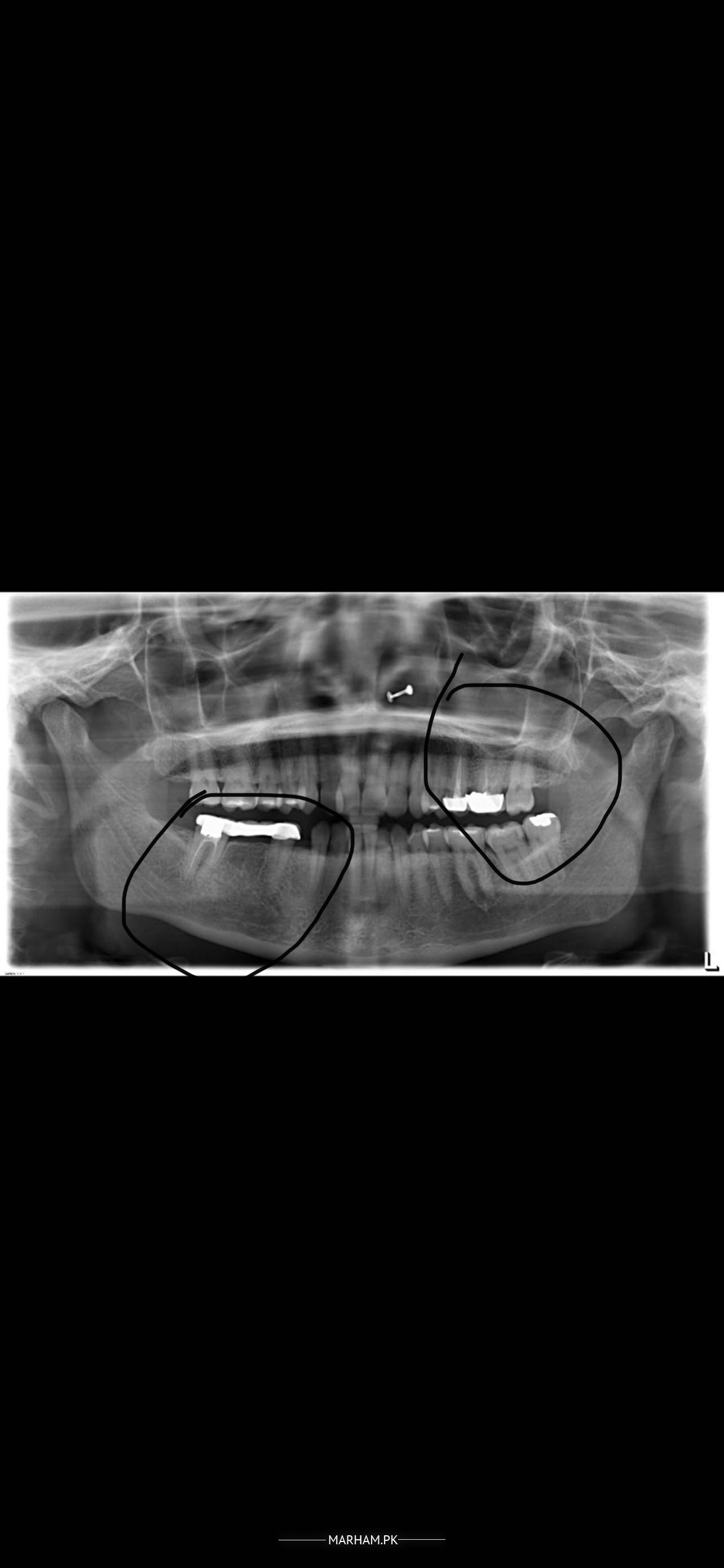 W/salam , ap k right aur left dono bridges ki root canal poor hui v hai. Thats not complete yet jis ki waja se ye failure mai ja skti hai aur right lower side p periapical changes already agai han due to infection. Agar ap bridge ni utarwana chahtin to drill k sth bridge k oper se b root canal ki ha skti hai. Aur ye yad rakhain k jab bhi ap root canal treatment krwain to X-Ray mai lazmi confirm krein k roots properly end tk fill hui han ya ni . Thanks