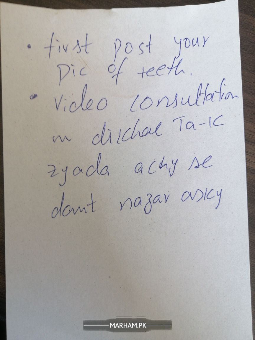 Firstly ap mjy ap danto ki andr se pic send krein or video consultation krein mery sth ta k zyda achy se dant ki conditions nzr askein