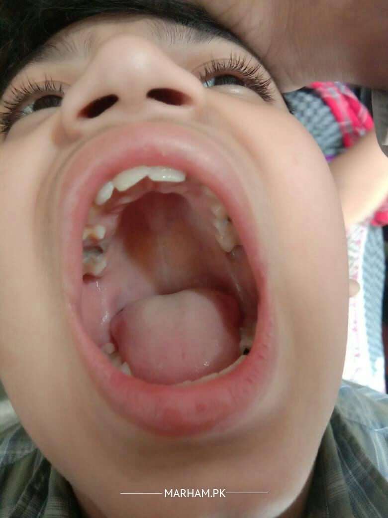 there are multiple carious teeth in both upper and lower jaw.