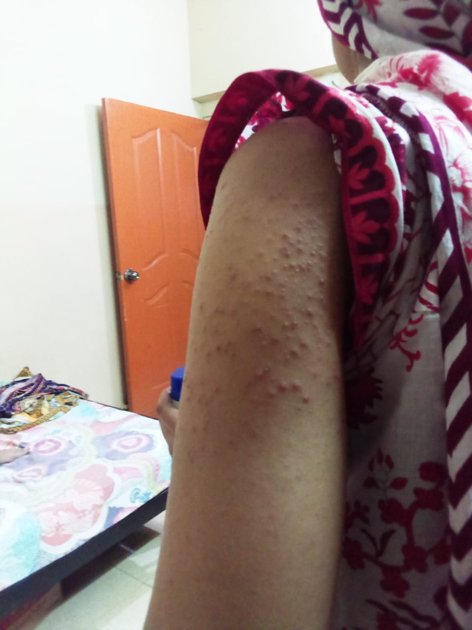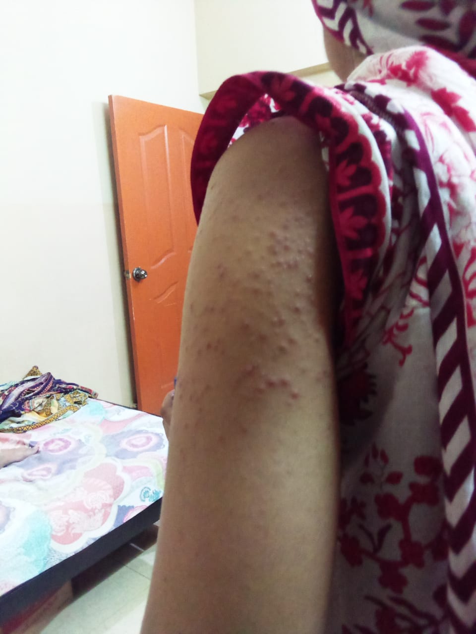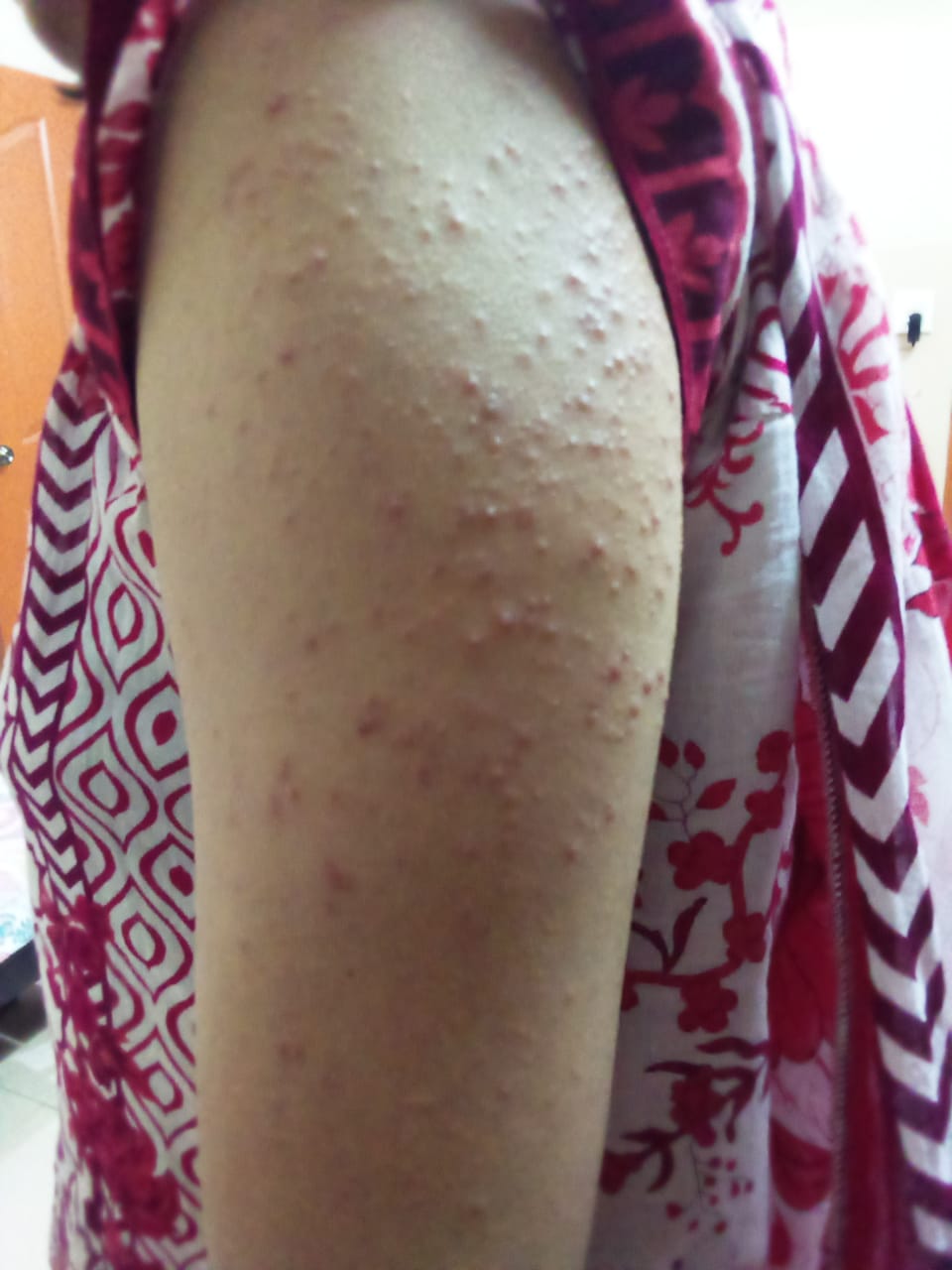 It seems like an allergic reaction. Apply cream fusac h twice daily. please consult a dermatologist near you.
