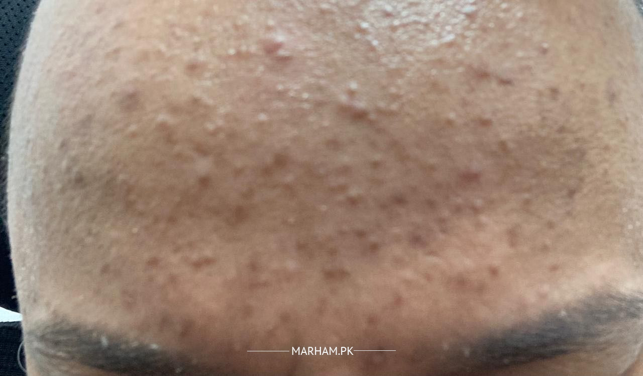 He is having reoccurring acne on foreground for 7,8 weeks. Acne ointments are already used but no effects
