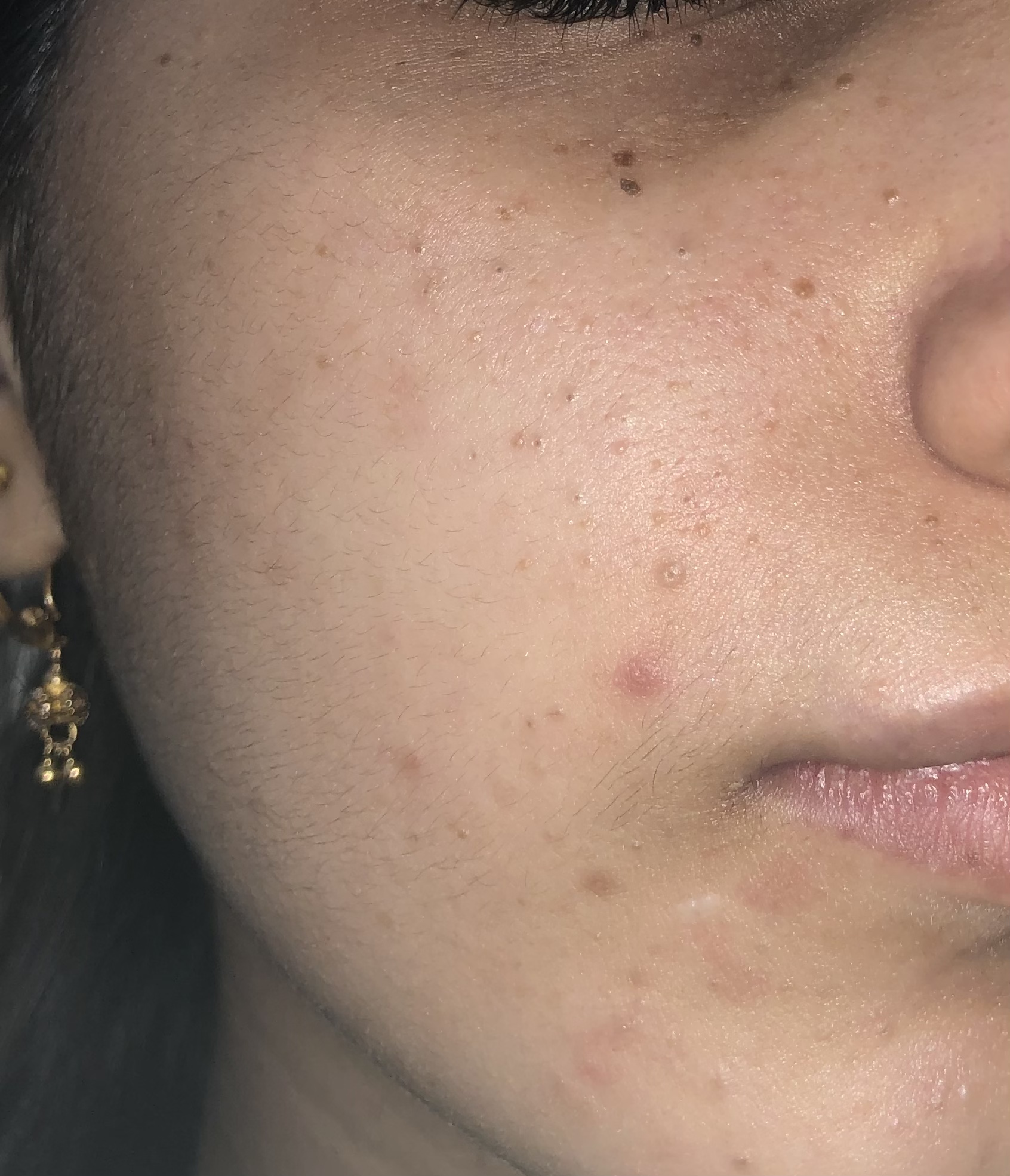 Pictures attached, I hve these small bumps on my face. What can i do to get rid of these. Nd please tell what type of bumps are these. I have dry skin