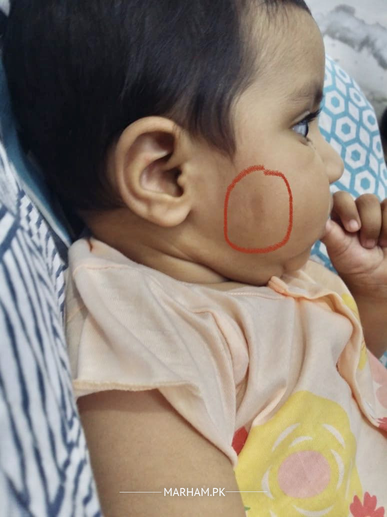 Aoa. My daughter is 6 months old. She got a dark patch on her face as shown in pic. Its visible since past 3 months. Plz guide how to get rid of it.