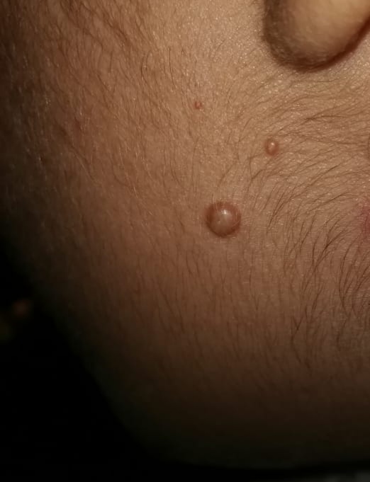 It is a viral infection known as molluscum contangiosum. Generally we can treat it by electrocautry but as in the present situation if that’s not availible use isotin gel every night at it.