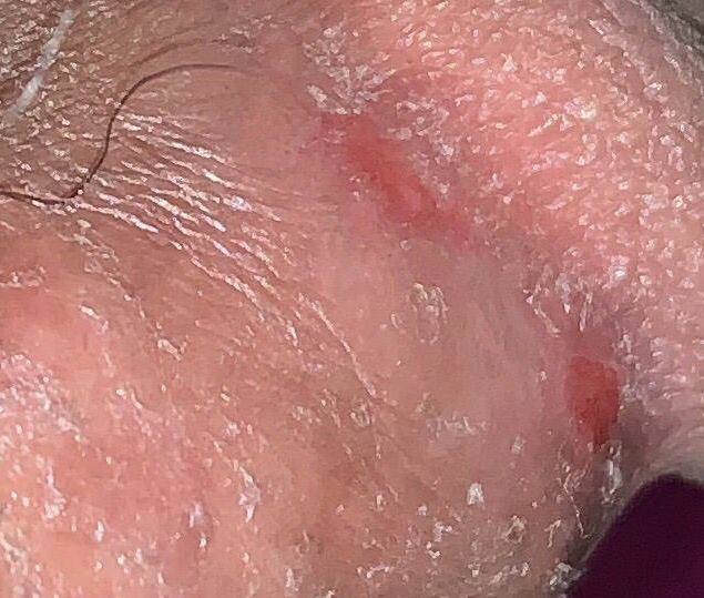 Hello My husband is facing reddish sores plus itching (rash) on his scalp and his private part as well. Sharing the picture here. He have already used canesten for penile Area but itchy rashes/ sores still persists on his genital part and Hairs. Kindly let me know what to give. Topical antifungal have already been used. Hx is for 10 days. Aggrevate after coital Activity on Genital Area. But thats not because of rough activity. Thats due to some skin disorder. Kindly suggest (I am Also Doctor but Don’t have much Idea about derma)