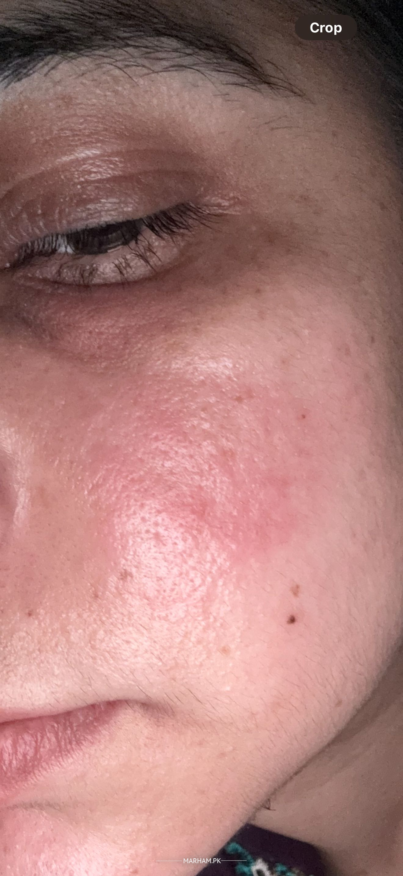 I have combination skin..phle esa kbi ni hua ..achanaq sa face ki cheeks and under eyes n uper eyes pa bht zyda itching h or red b h sari jaga….moisture lgane pa burning b hoti h…15 din phle dermatologist ko dekhua us na steriod ointmnt di jis sa aram a gya..ab 10 bad bad dobara skin red or itching hu rea h …eyes uper eyes ma thordi c swelling b hoi hooi h