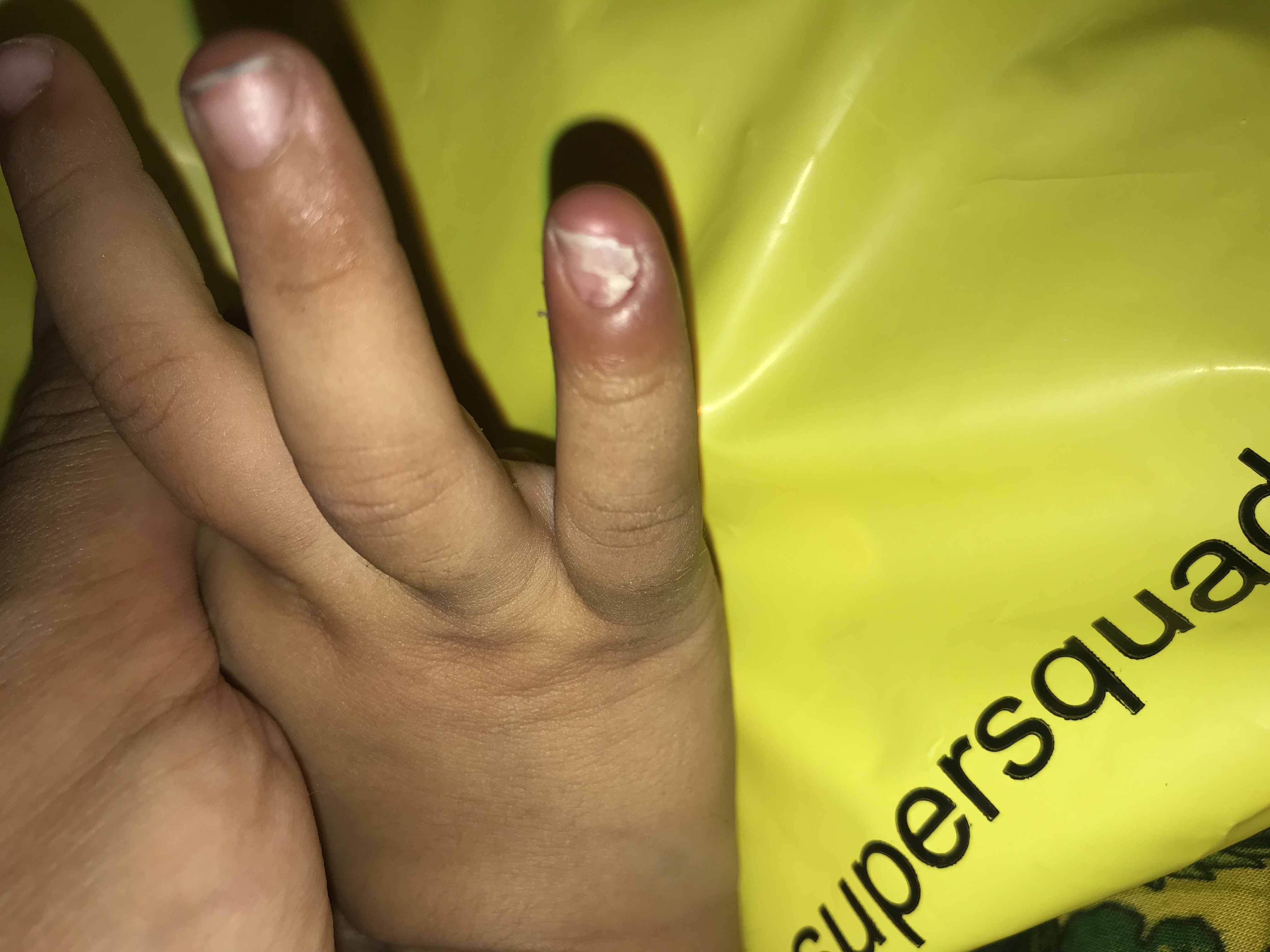 My daughter finger became white and swelled n then her swelling reduced n colour change to red but now her one finger nail is looking like this