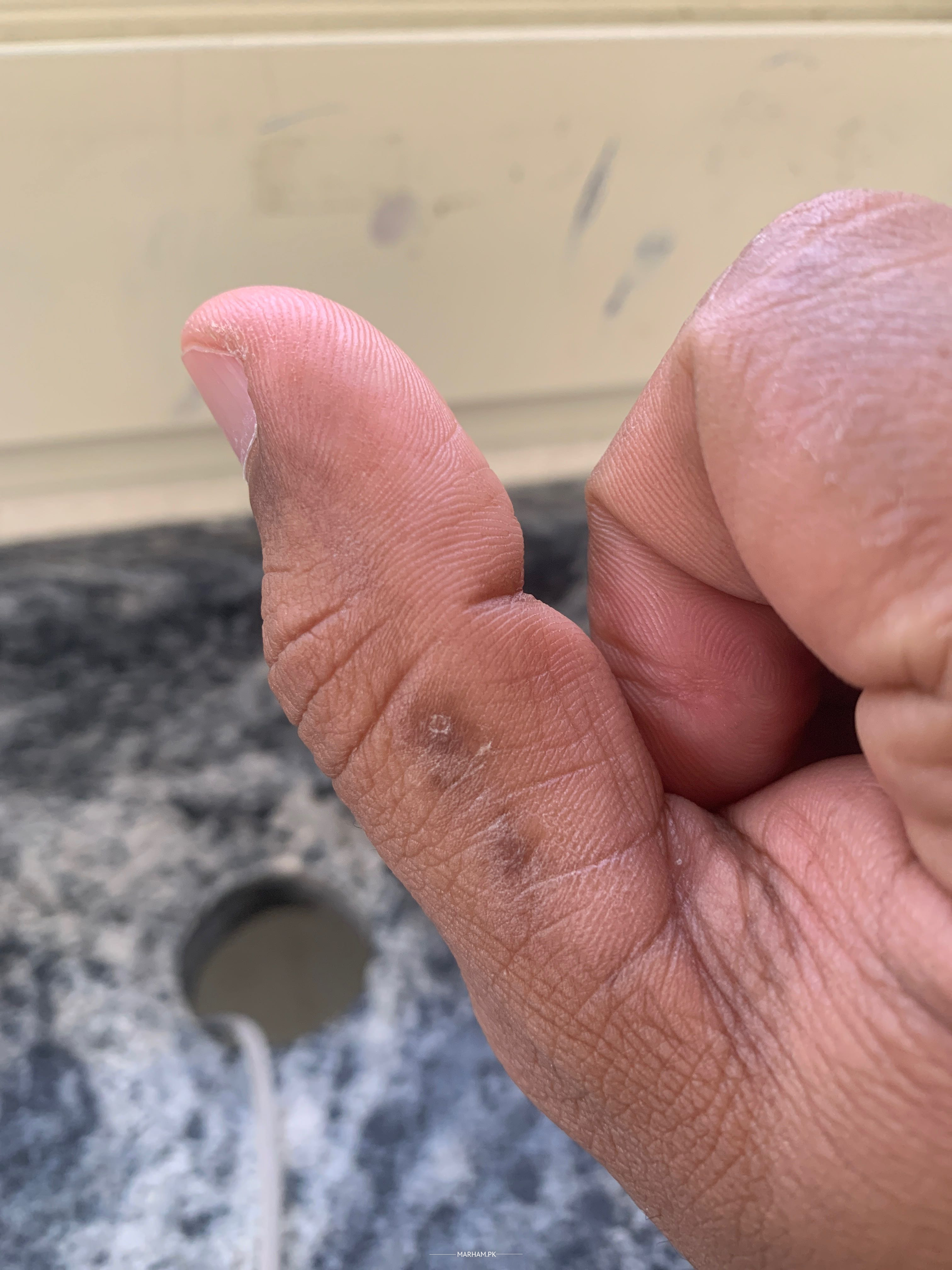 Mery dono hato ki inglia kuch time sy ik dana niklta jis ko ma pop kr dyta hon or wo dana kuch dino ma black color ki dead skin type peal kar dyna hon kuch kharis ni or jisam k kisi dory hisy py b aysa koi problem ni.