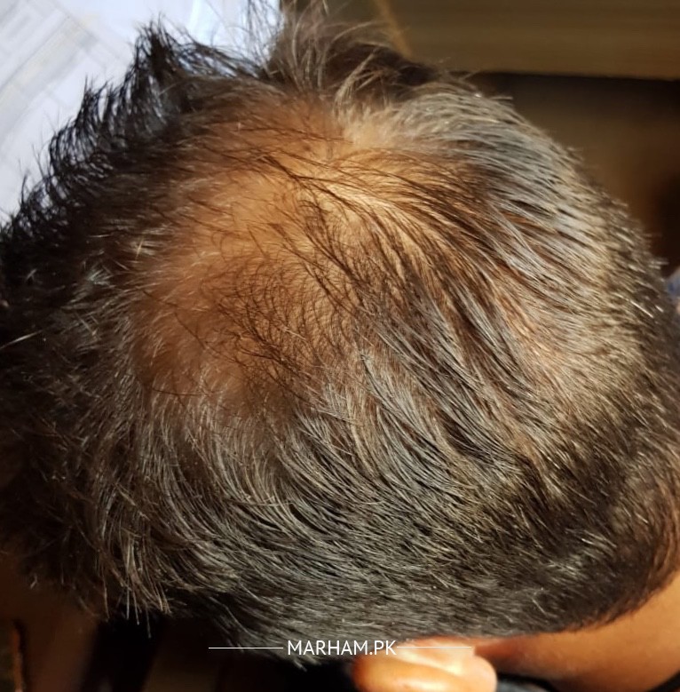Aslam o Alikum , I have hair loss problem which started from center of my head and it looks like I am going to loose remaining all my hairs in center region within next 6-18 I am a healthy man with no suggest any treatment or are attached.