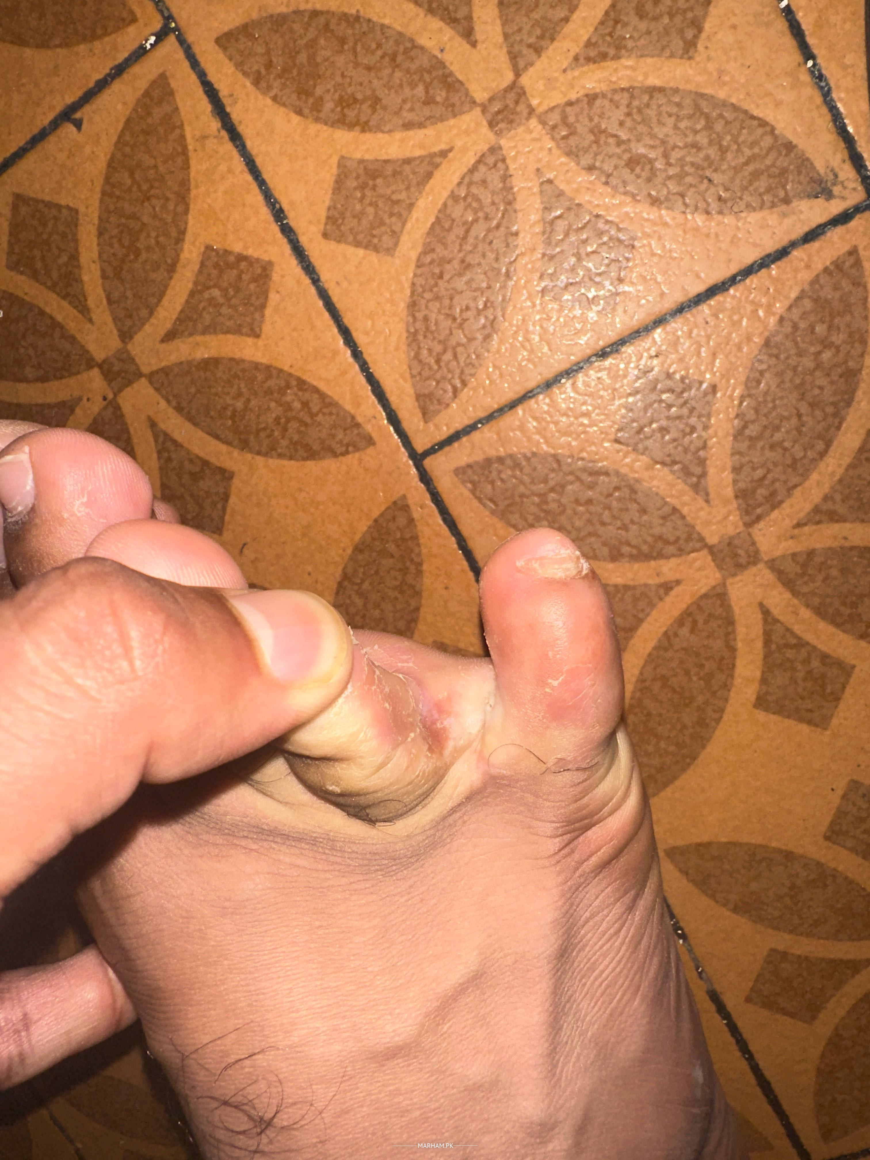Agar ungliyon ke darmiyan ki jild phat rahi ho, wahan se chip-chipahat wala mada (sticky fluid) nikalta ho aur sakht kharish ho, to ye behtareen hai.