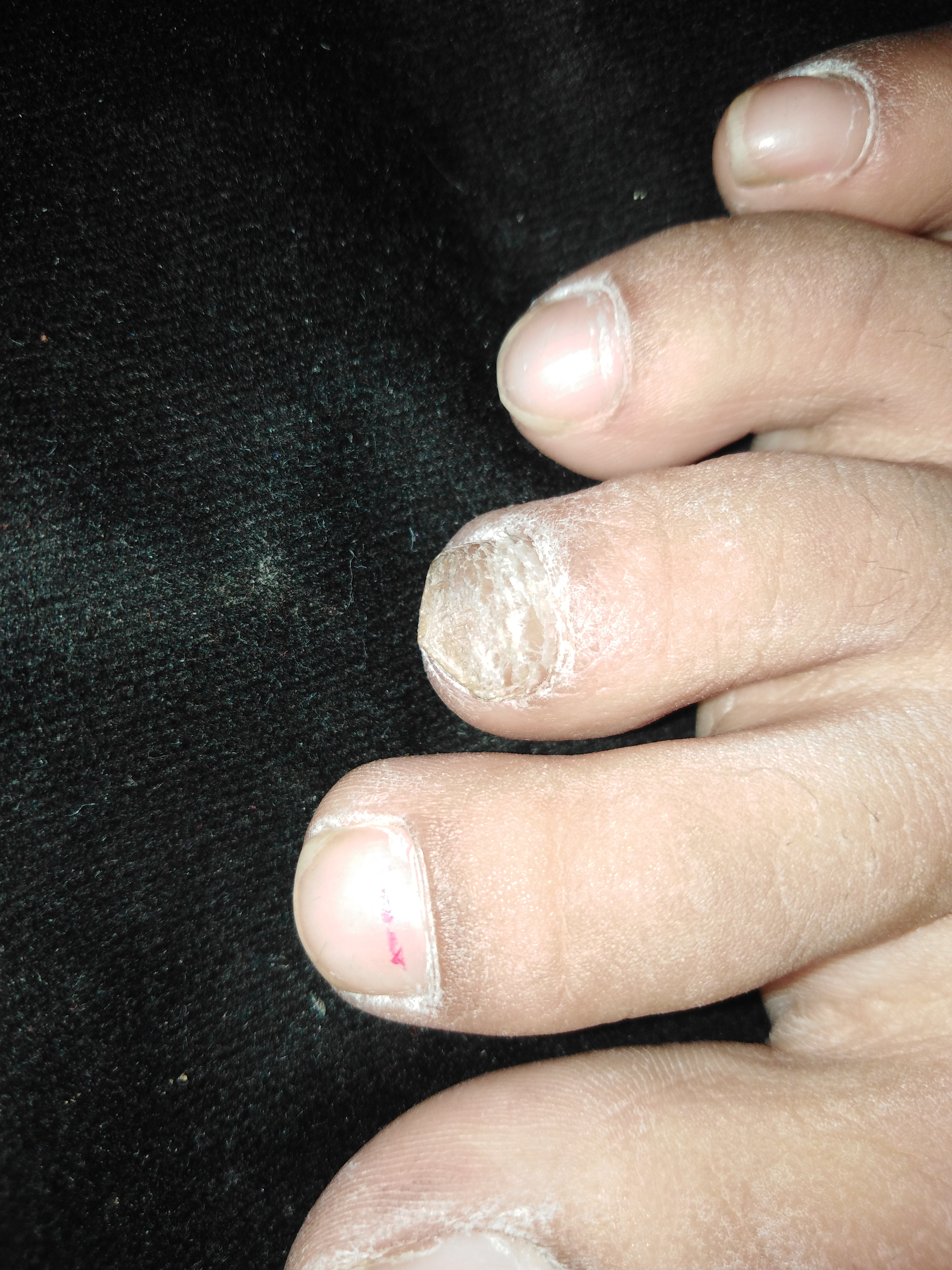 Take cap zolanix 150mg weekly for 4 months and TERBISIL SPRAY AROUND NAILS 4 MONTHS WITH TAB ZINC TWICE DAILY