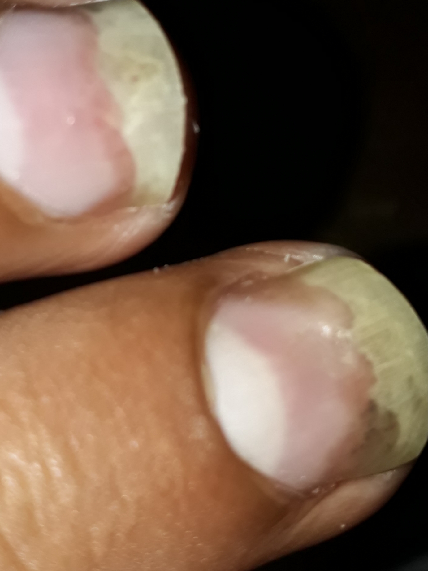 You have Fungal infection of the nail. Do you have the bad habit of nail biting ?