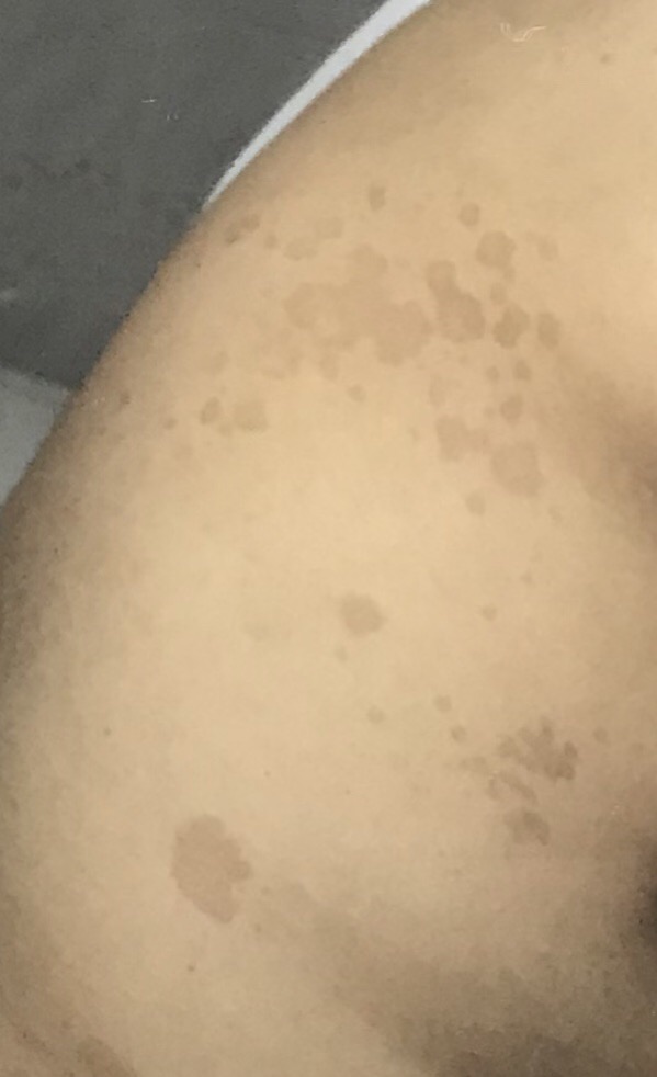 Thanks for sharing ur concernZ it’s a condition called tinea versicolor which is a fungal infection. u can get “ketoconazole shampoo†from a pharmacy and use it while bathing. Apply hydrozole cream on it once at night for 3-4 weeks