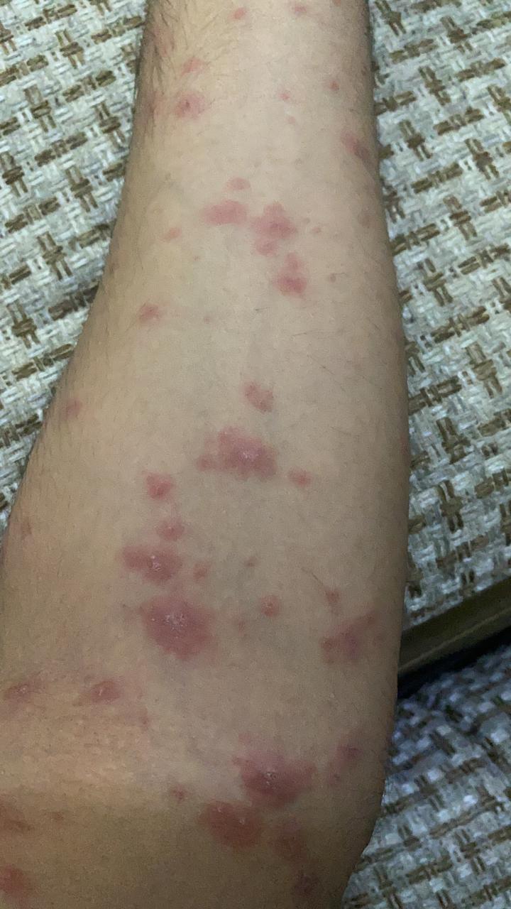 2 weeks back he got small red spots which was considered as scabies and Lorex was given now today the spots are spreaded they are on arms back stomach groin area and it’s not itchy. Please tell me is it healing or what? He lives in myanmar Burma so can’t visit doctor personally