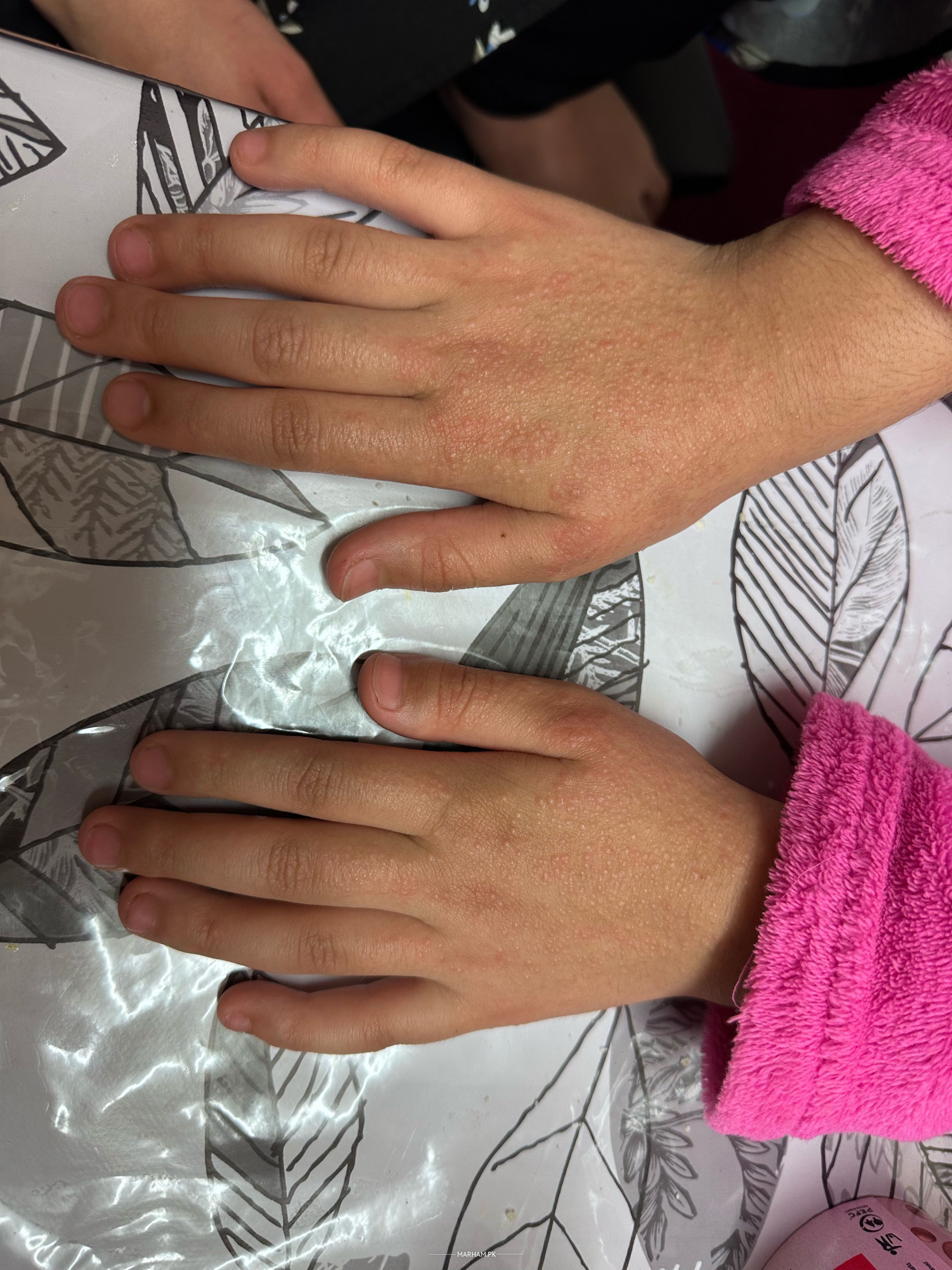 It's been 3 weeks since she has this rush on face as well as on her hand. She don't have any favor but she's feeling upset because of this