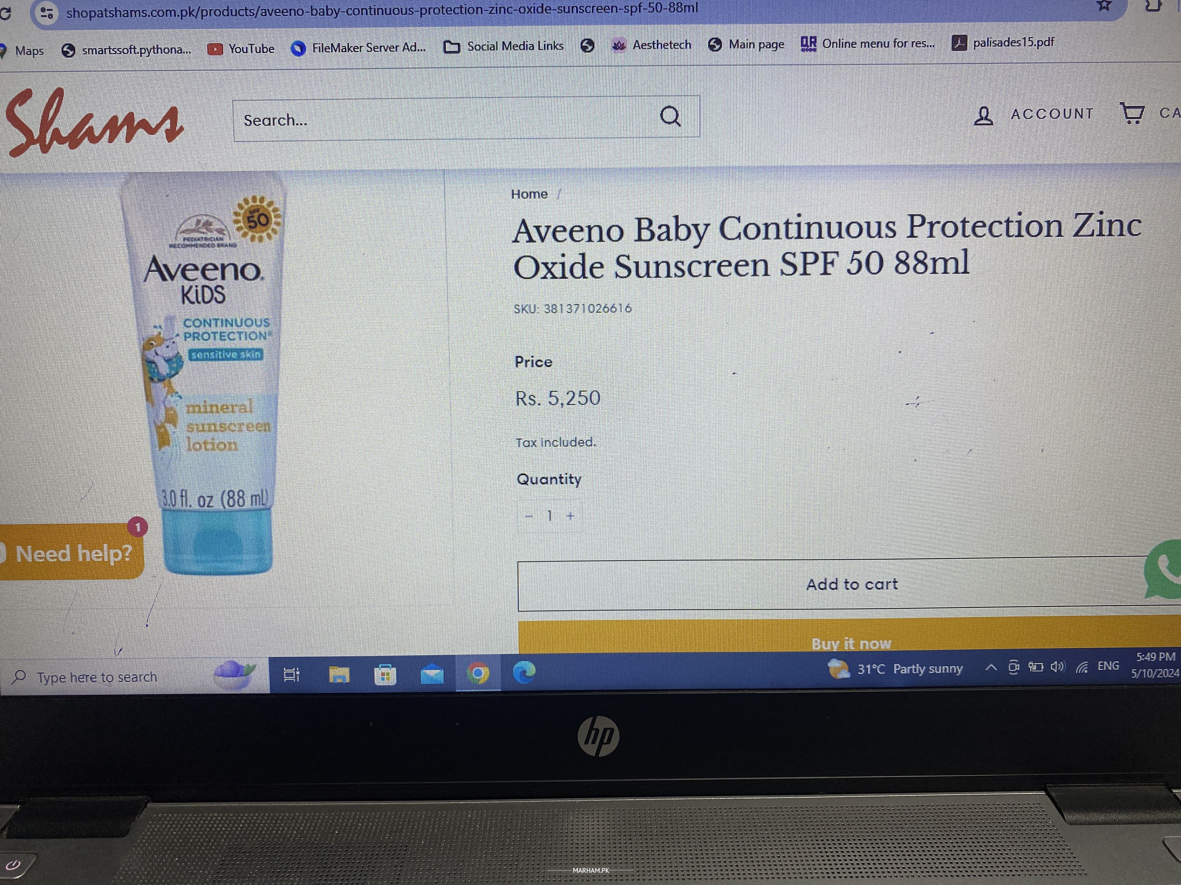 U should also use caps/ hats and umbrellas when out in the sun. Pakistani local sunscreen for kids are not available. U can order imported one online. The sunscreen/sunblock should be mineral sunscreen that is zinc oxide based . I found this link online.
