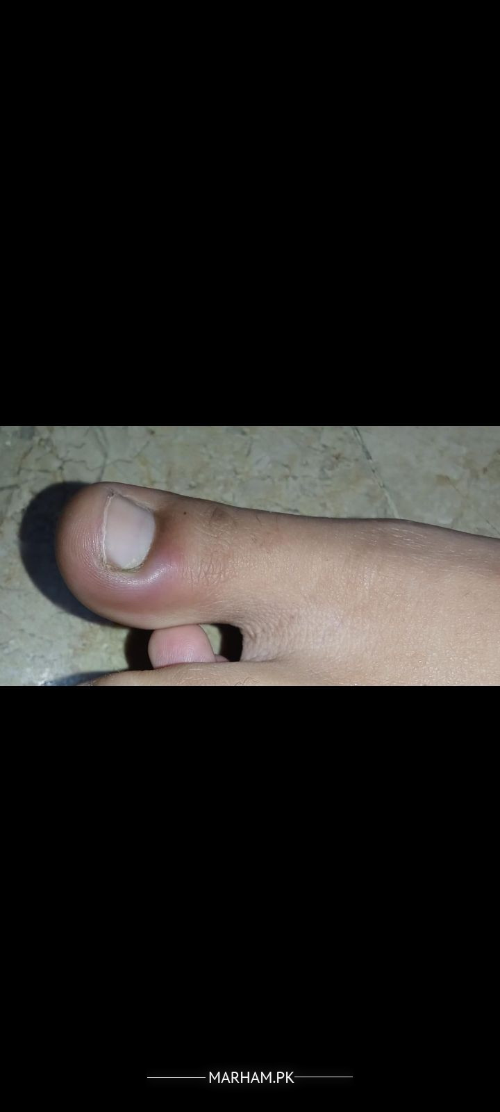This is inflammation/infection of nail fold due to ingrown nail. It can be treated temporarily with medication but for long term prevention u need to prevent the nail growth inside your nail fold skin. For treatment kindly consult https://www.marham.pk/online-consultation/dermatologist/gujranwala/dr-asma-idrees-42886