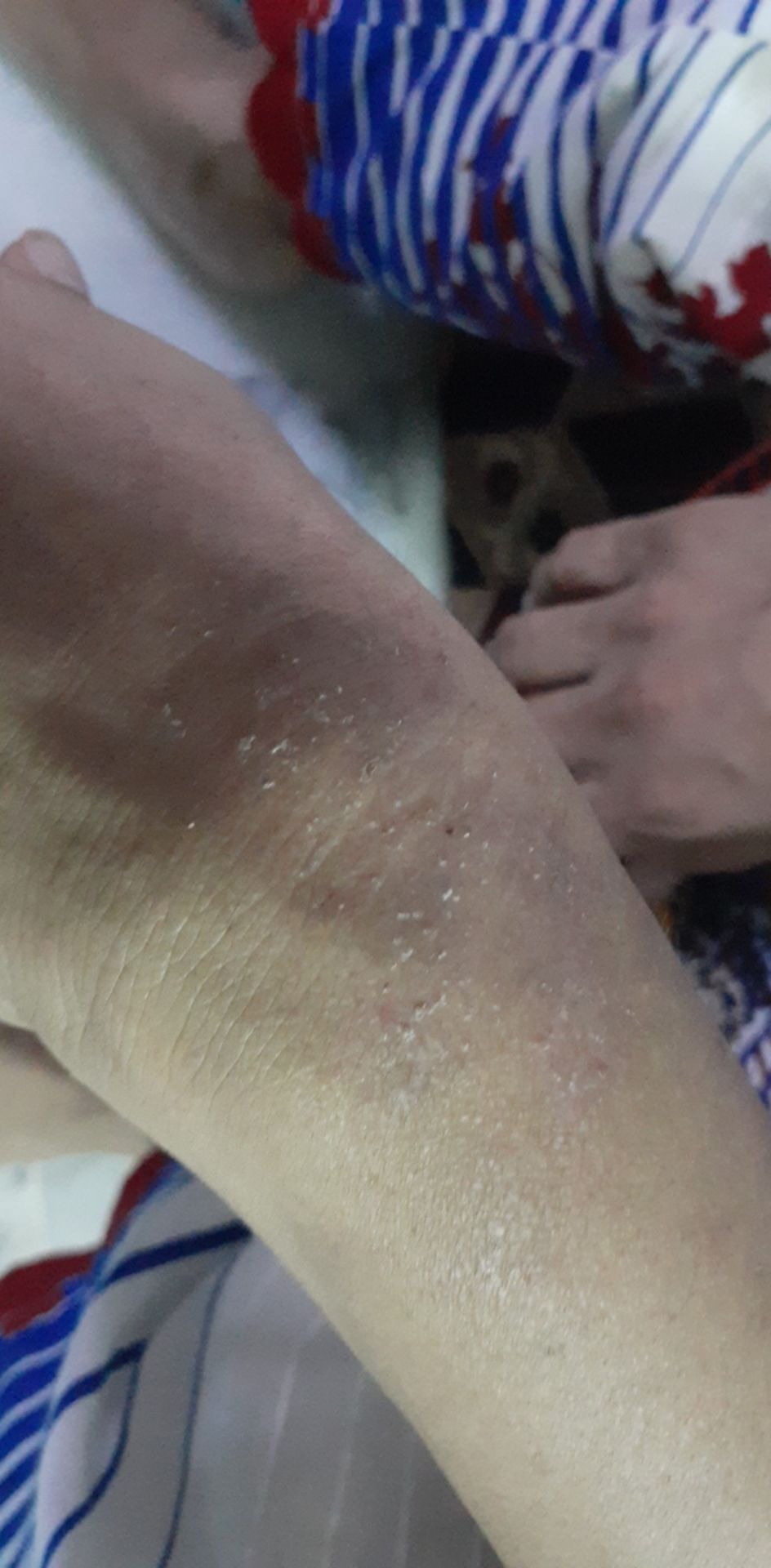 Dear pt plz just take anti allergic only for few days then review with new pics as due to combination therapy we are unable to dig out the underlying original diagnosis its important to rule out tinea incognito