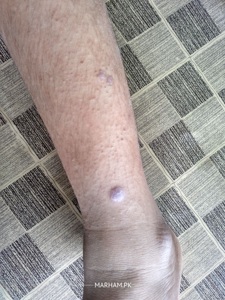 This might be Lichen planus. She needs to show to a dermatologist near her