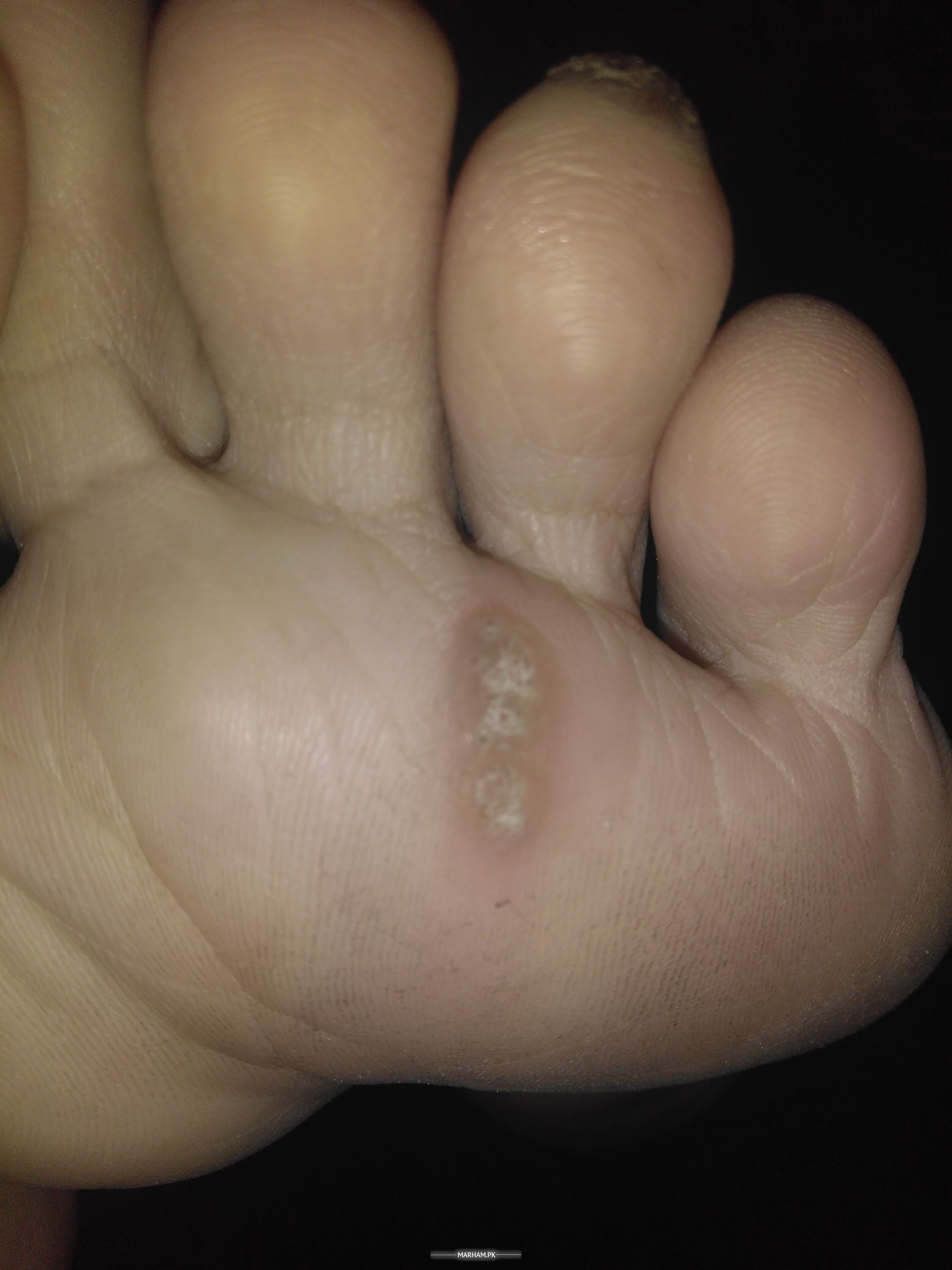 Mere pao pe 2 jaga kuch ajieb sa fungus type ka hugaya h, takleef nh huti magr samjh nh ata k wo hai kiyaaa, corn hai ya fingus hua h please guide pe...