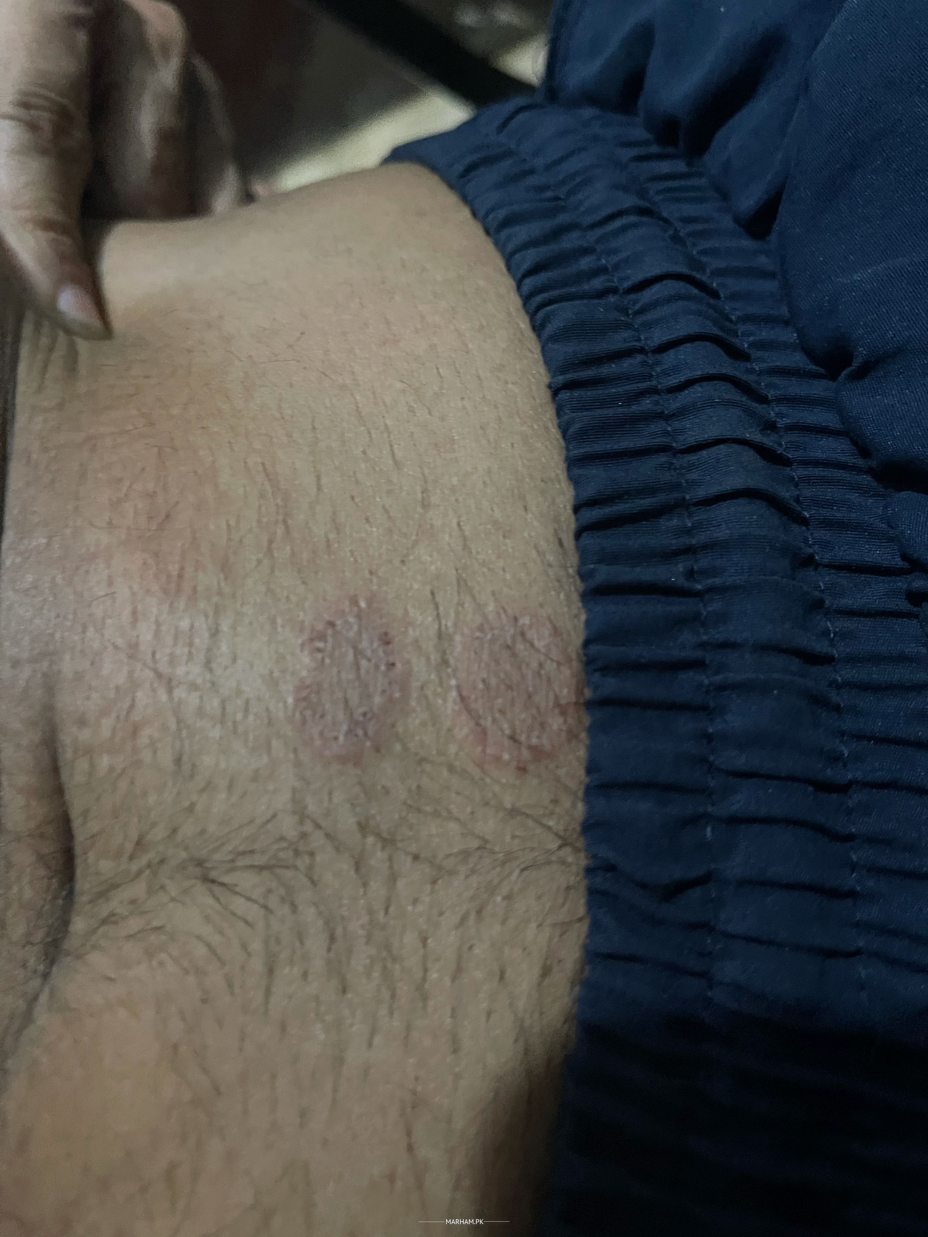 Pait k nichy ye nishan bana hua hai aur isky ilawa private part k pas bhi 2 nishan aur bhi bany huy hain aur kharish bhi hoti hai ye fungus hai ya koi aur bimari and iski treatment kya hosakti hai