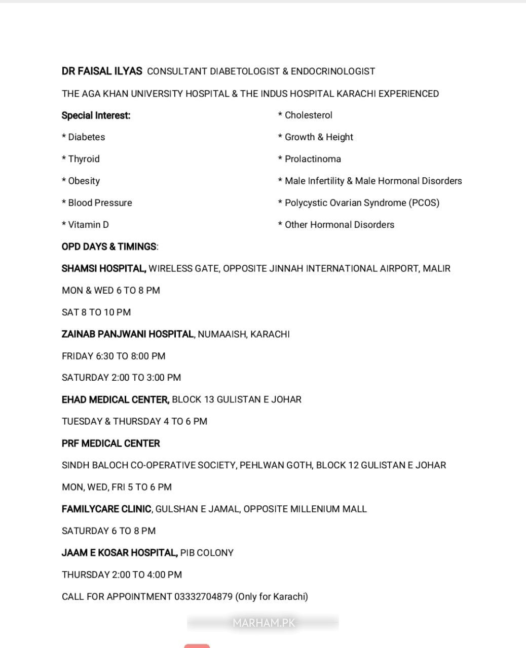 Kindly visit any of my clinics. I am sending you the schedule of my OPDs.