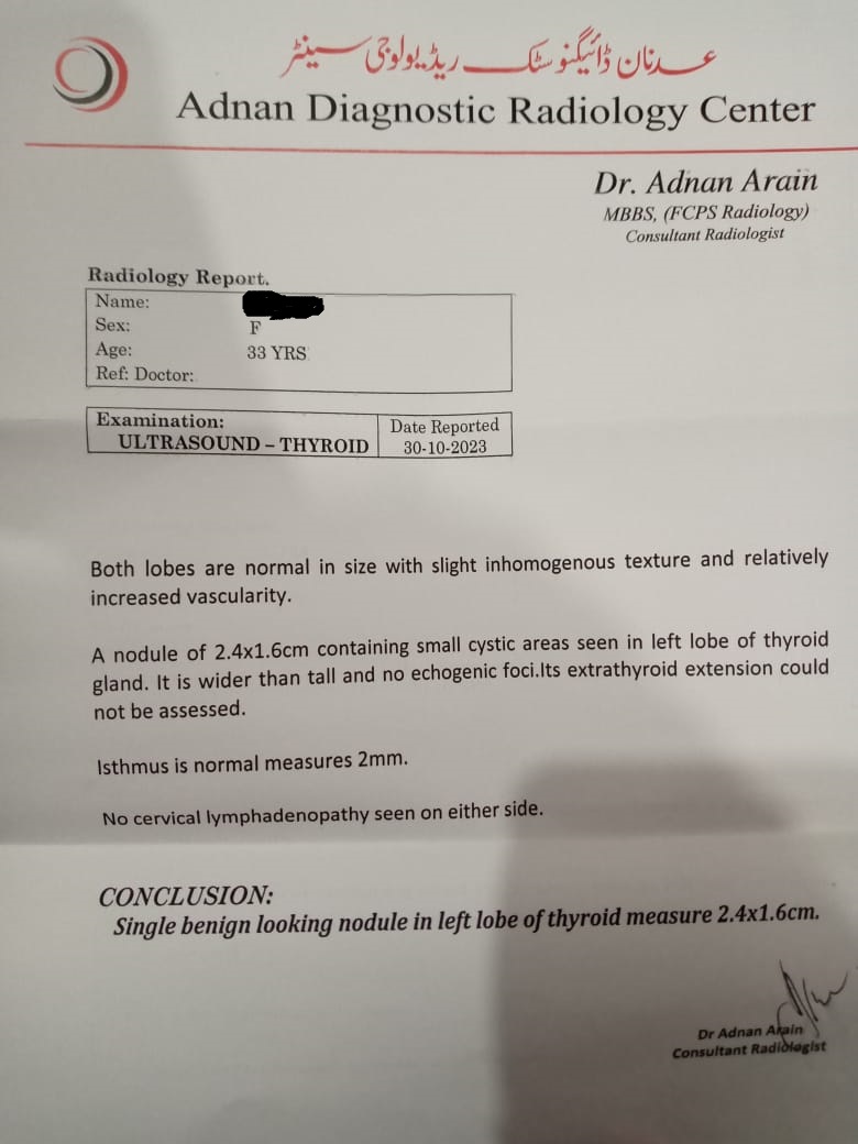 Hi everyone! I have cold nodule on left lobe of my thyroid gland with hypothyroidism. My recent sonogram revealed that my nodule has now high vascularity. What should be the risk factors included further? Is it indicating any malignancy?