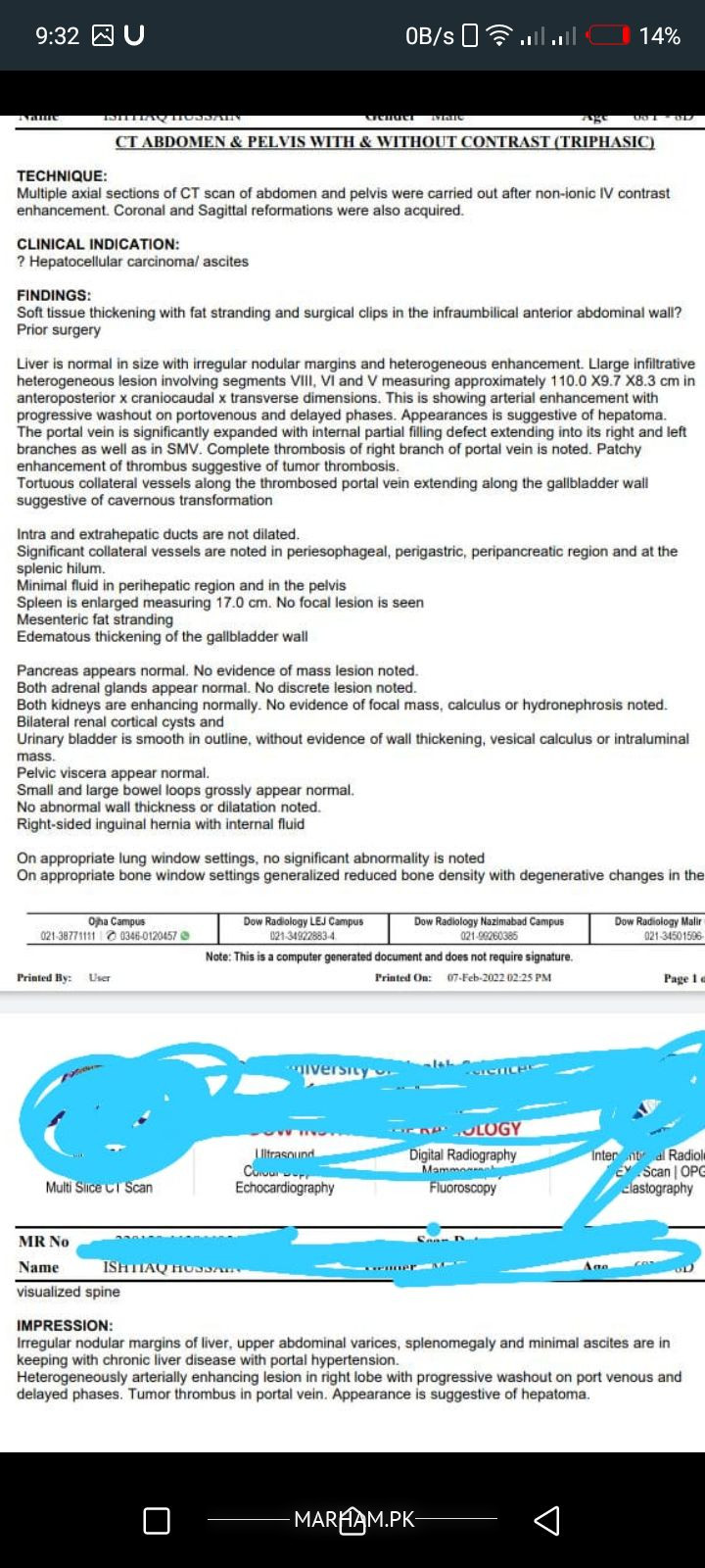 assalamualaikum mery father ki pehly 4 dafa endoscopy hochuki hai abhi doctor ny recommend kia ct scan abdomianl karwayen wo karwaya to usmy tumor thumbrose portal aya hai plz guide karden k kia treatment hoskta ha my father age 63 above