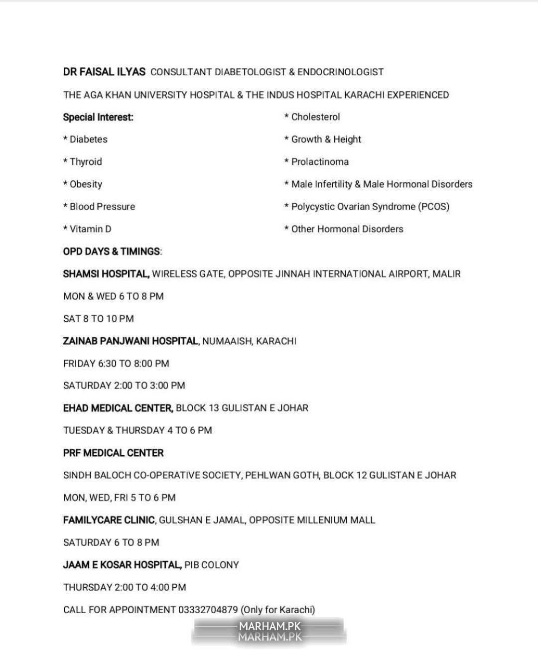 Kindly visit any of my clinics. I am sending you the schedule of my OPDs. Or consult me online via MARHAM.