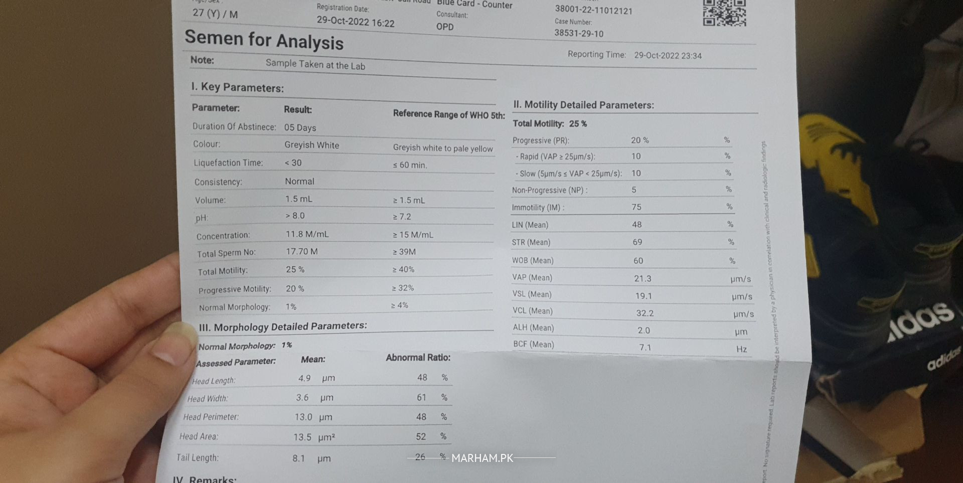 sperm count motility and morphology all are low. This is called OAT syndrome.