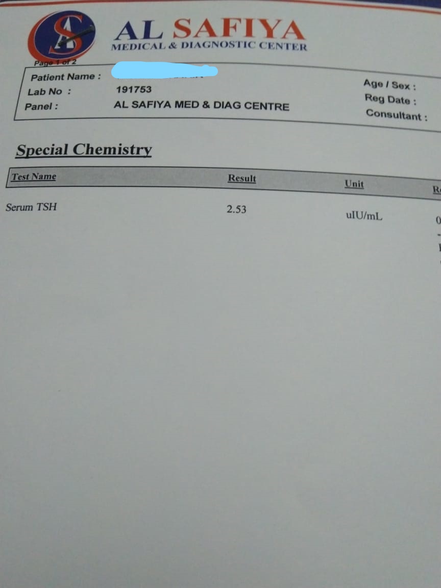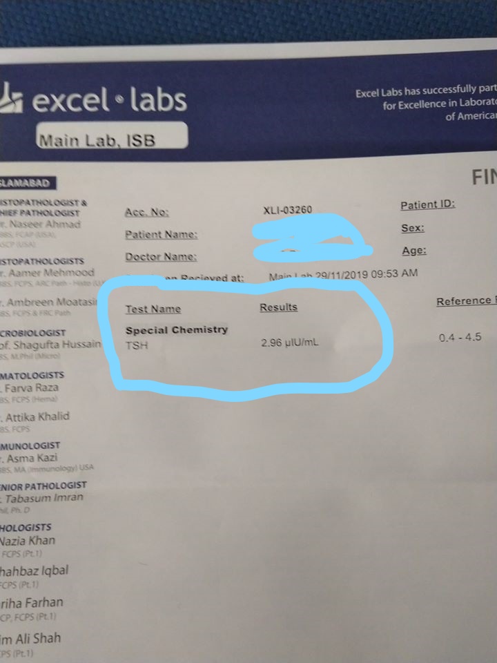 Some days back my Doctor advised mine for the TFT test. I did TFT in Islamabad based Lab. TSH level was 2.40. on November 20, 2019, I did /repeat the TFT from the Aga khan lab. The Aga khan lab report was TSH 5.46 ul/ml. I was confused and did the said test in Pakistan known lab Excel lab Islamabad while the result was 2.80 0r 90 ul/ml. Meet the Excel lab manager and explained the fluctuation in results. they repeated the TSH once again and the result was in the range of 2. something. I then went to Aga khan lab in Islamabad and ask, but firstly the refused to discuss the issue while standing on their report 5.46. there was no Thyroid issue in Past to me nor I used its medicine. only taking my DMT2 and HTN medicine. kindly guide me on what can I do?