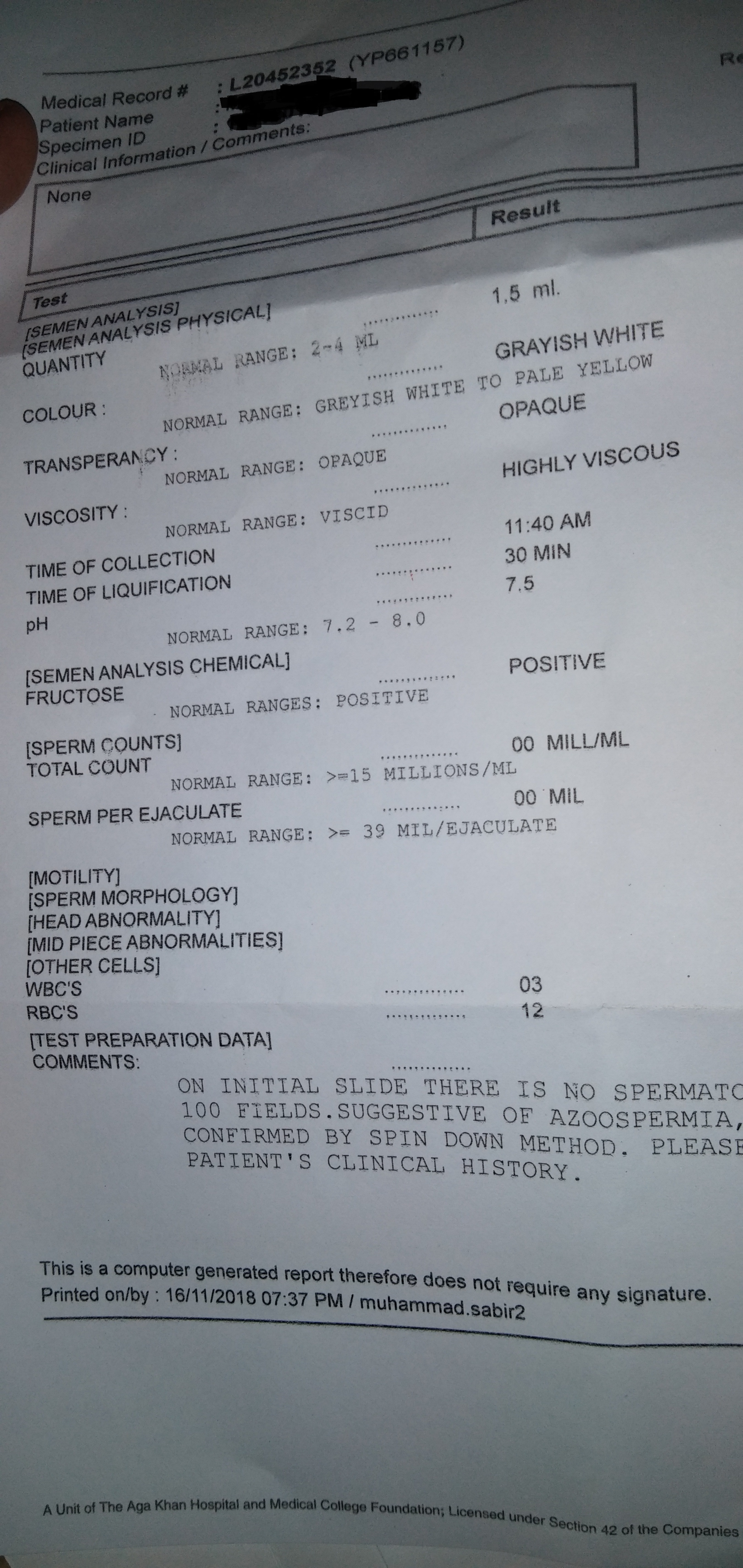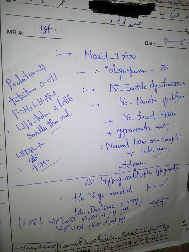 Assalam Aluikum muje hypoganadism tha doctor se treatment li testerone level sae hua he but sperm production nai ho rhi me 2 month se ferti-c and ferti-m use kar rha ho please Help. All Report Here. <a target="_blank" href=" rel="nofollow">