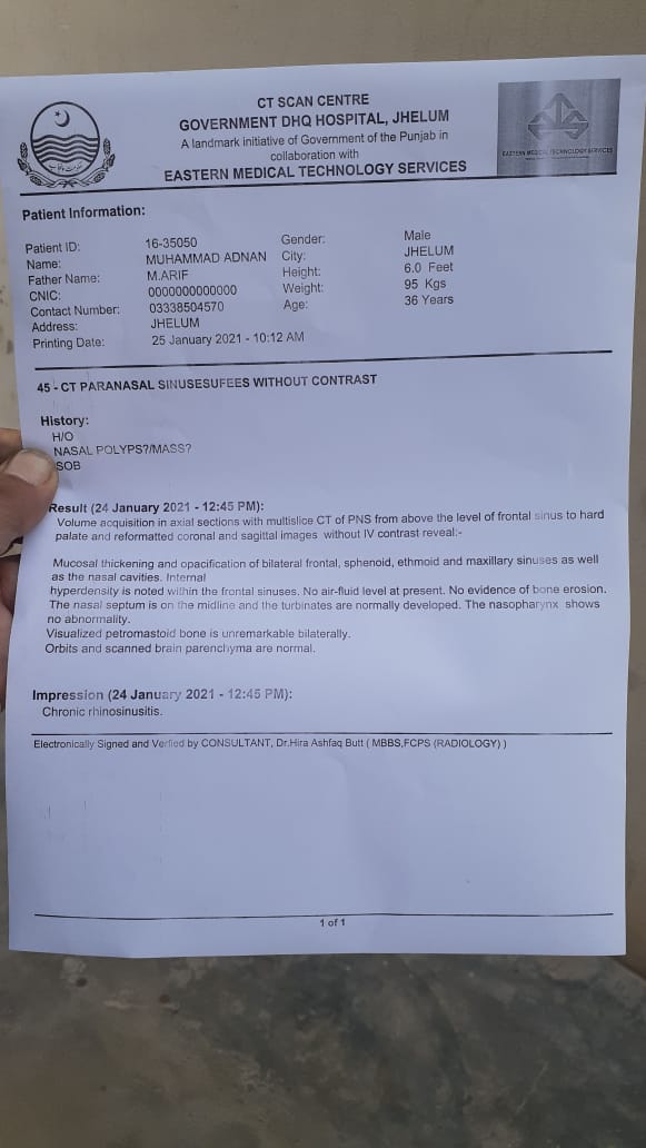 Doctor nay zbani he bola h ct scan dykh k. Prescription pay nai keha