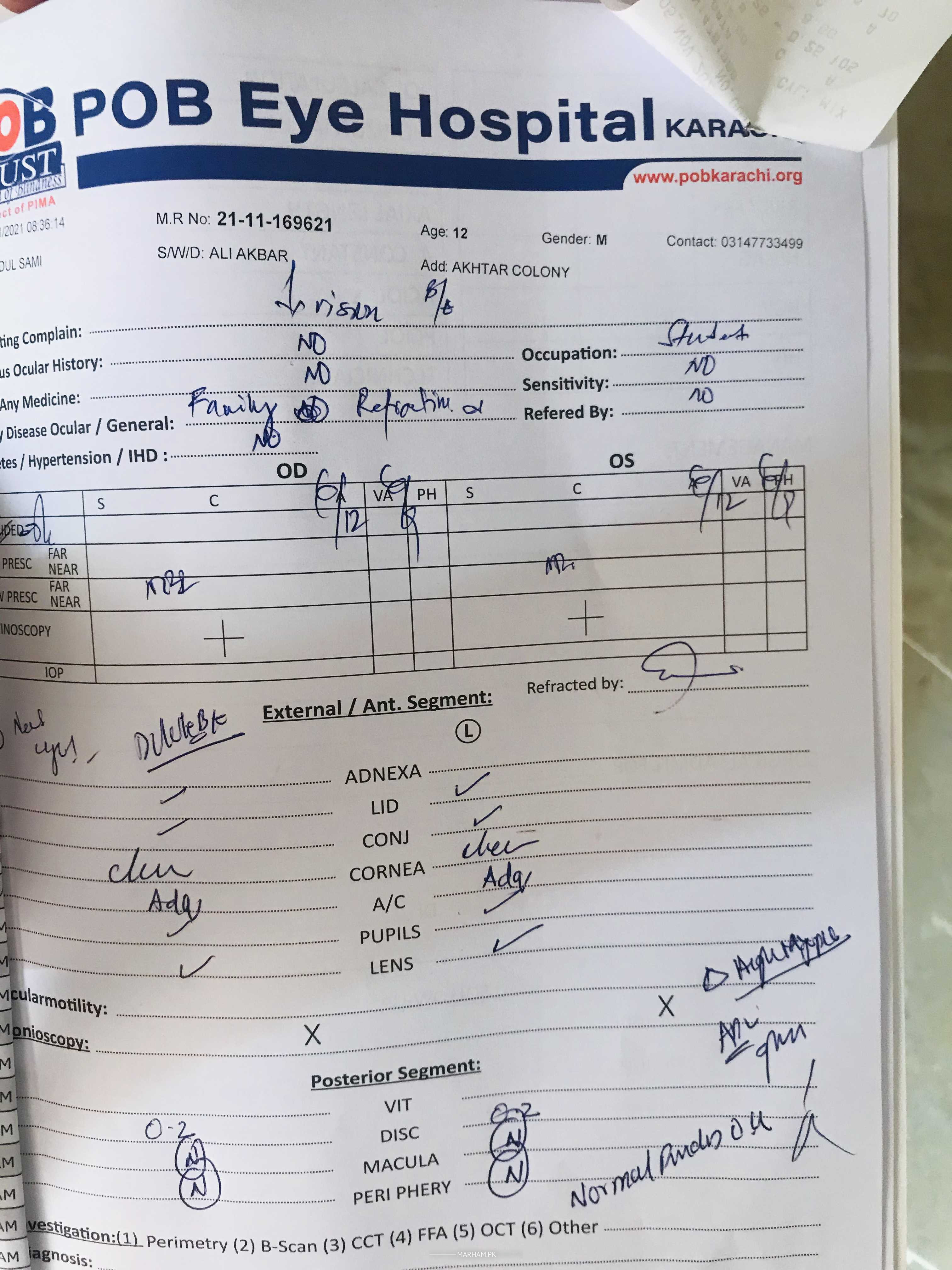 My Younger brother aged 12 years , has been wearing eye glasses for past 4 years. First he was suggested number of -2.5 after , after an year the number decreased to -3.5, and now it is -8.25. So, he is facing continuous fall in eye sight despite wearing glasses regularly. Last check up from the doctor and computerised is attached . Please advice following: 1- what is the reason for continuous fall in eye sight? 2- what should be done to stop this decrease in eye sight? 3- what are the consequences of this fall of eye sight? 4- recommend good doctor to consult in Karachi