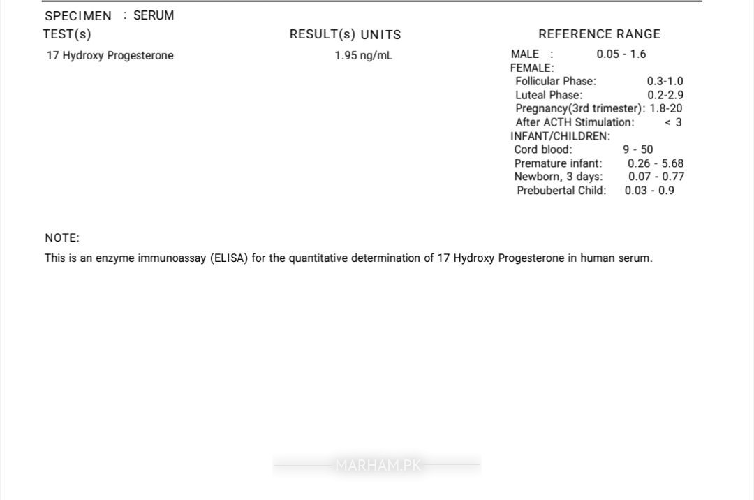 it's the report of 10 days old child of 17 hydroxyprogestrone . kindly tell that is it ok