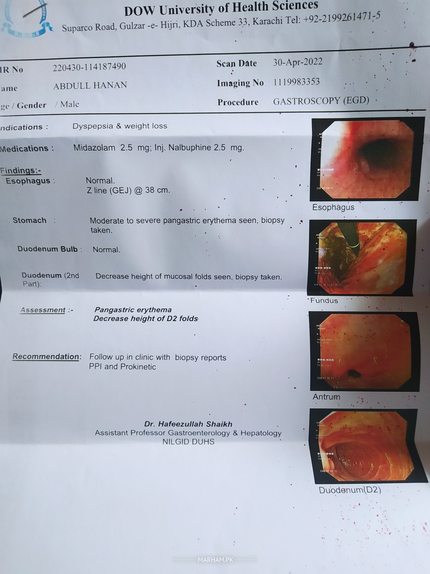 This is my endoscopy report.. please let me know what is wrong with me..? Is it worrisome or is it ok? Please let me know the prescribed diet that i should take and what should i avoid?