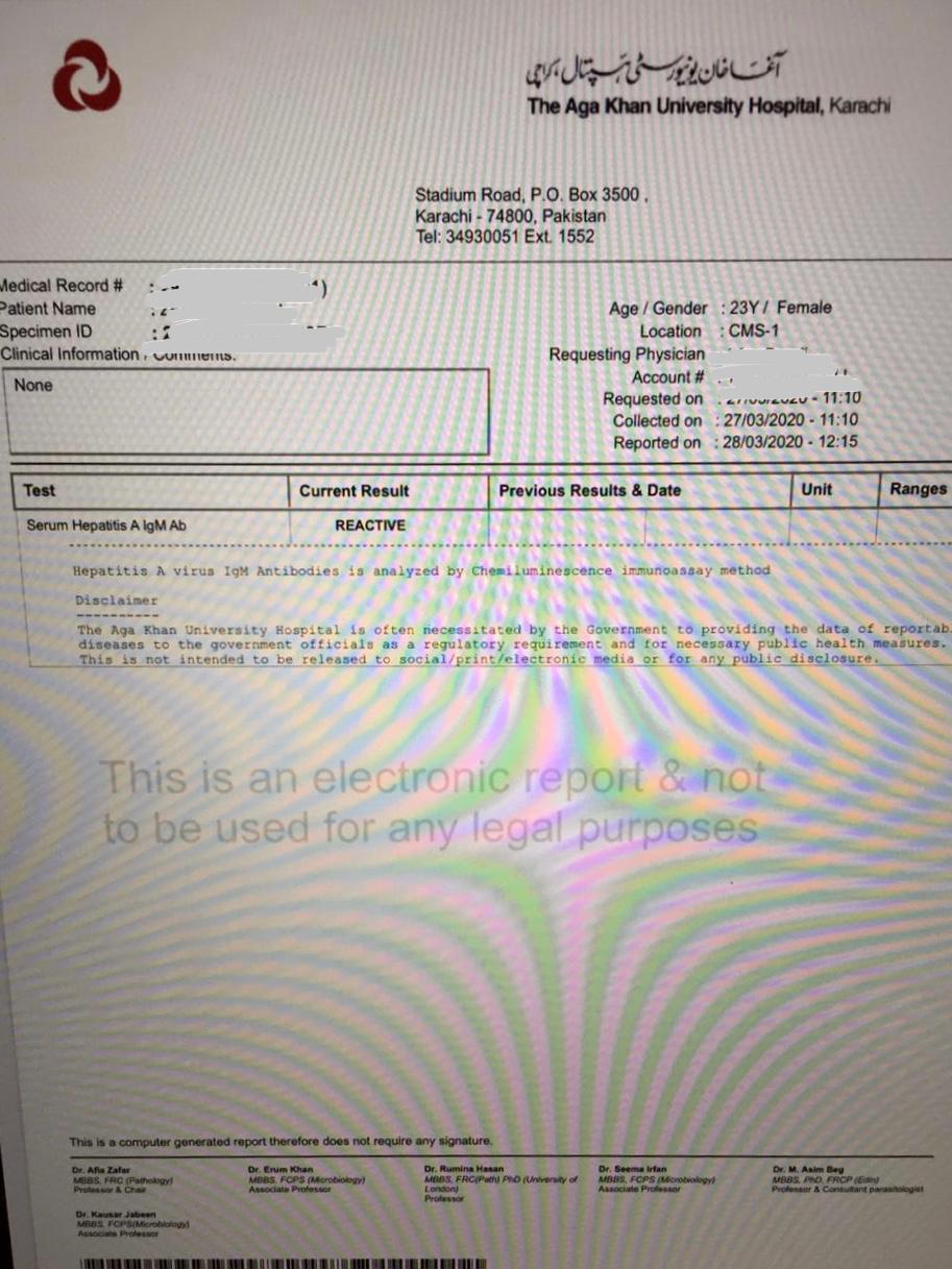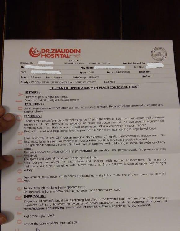 She was examined before the lockdown. Doctor suspected it was either Hepatitis A or appendix