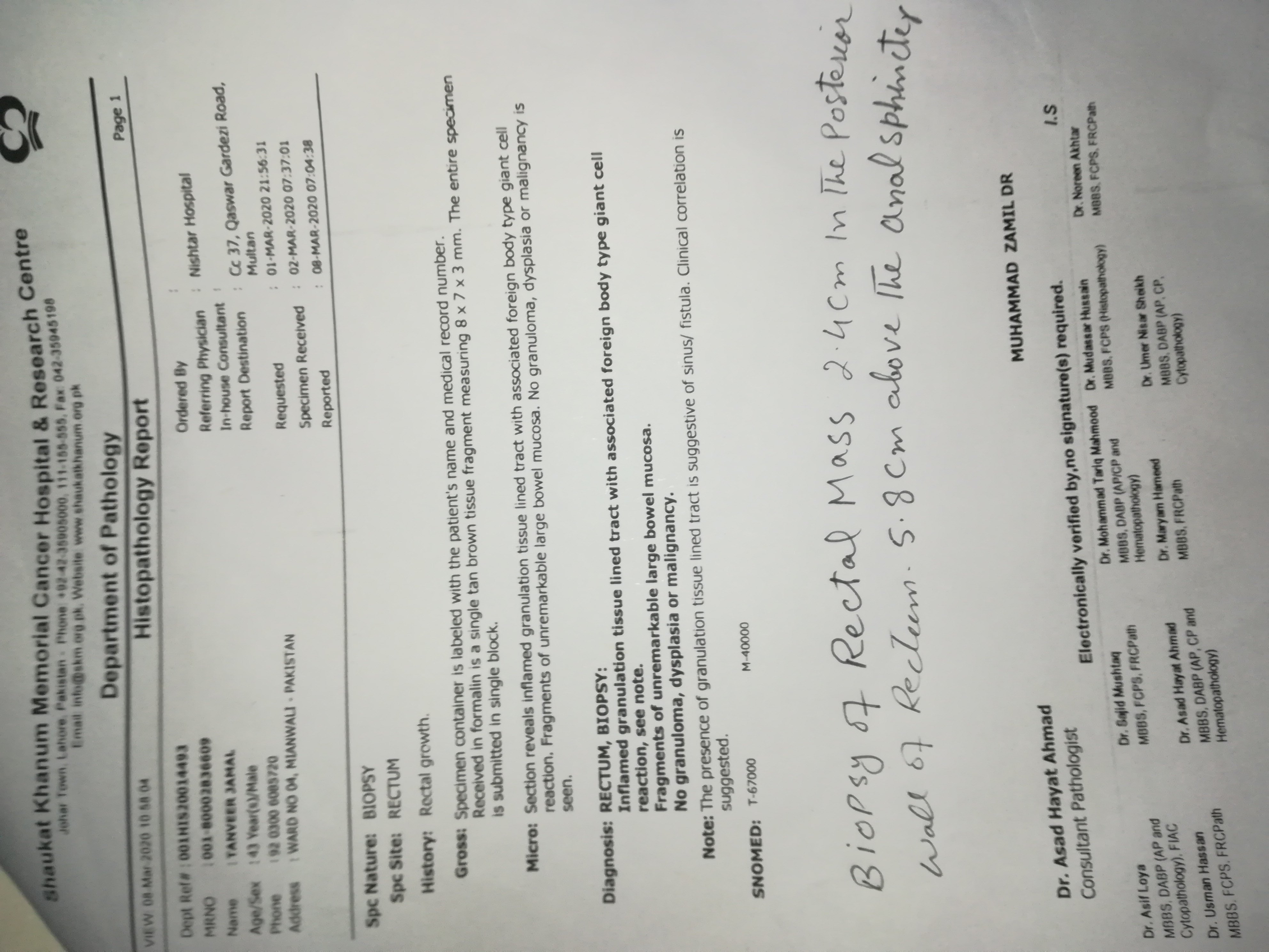 I have fissure and pain problem 6 month taking GTN cream problem I felt A mass in anorectal region .got checked in Nishter Hospital took biopsy of the after biopsy sever bleeding start which stop after a week biopsy result show no CT scan show polypoidal mass 9.1cm from anal please tell what is the solution of polypoidal mass hanging in lumen which is3.1cm in